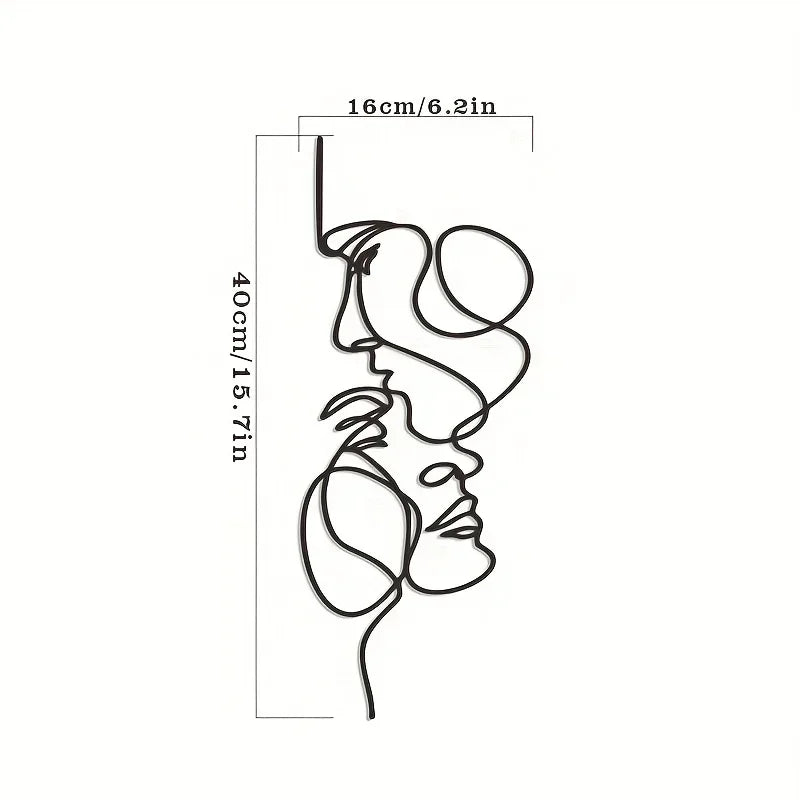 đŒïž Minimalistisk VĂ€ggkonst i Metall â Abstrakt Ansiktslinje â Svart JĂ€rnskulptur för Modern Inredning