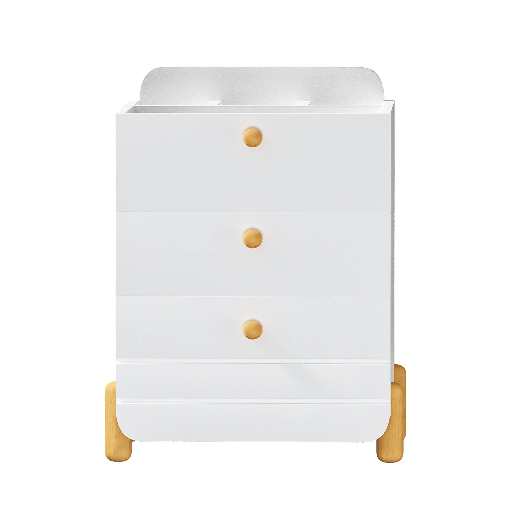 Sängbord med 3 lådor och hyllor – Tyst låddesign, eleganta träfärgade ben, vitt