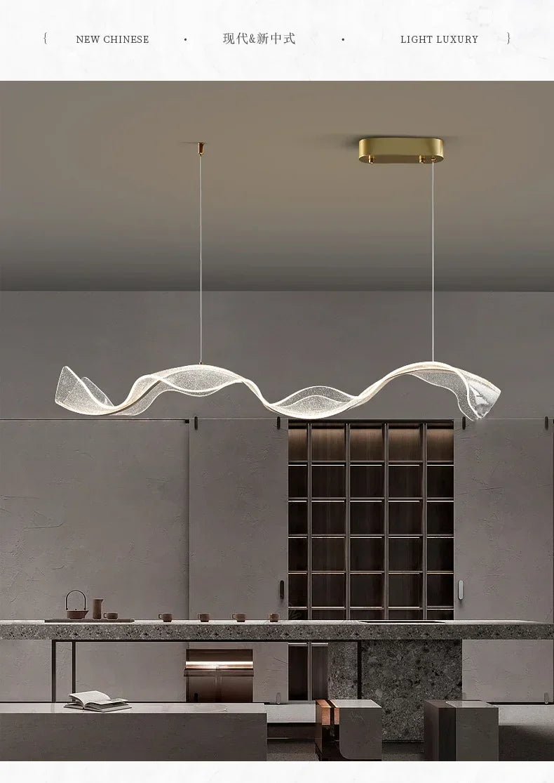 Nordisk Designer LED Taklampa – Våginspirerad Pendellampa i Akryl & Metall – För Matbord, Vardagsrum & Kök
