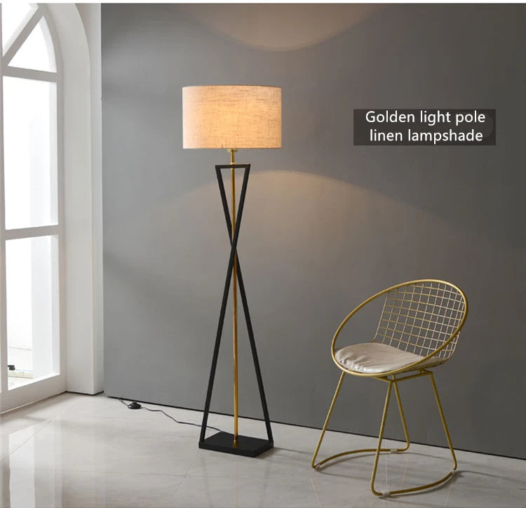 Nordisk Modern Golvlampa – Kreativ Metallisk Design med Tygskärm – För Sovrum & Vardagsrum