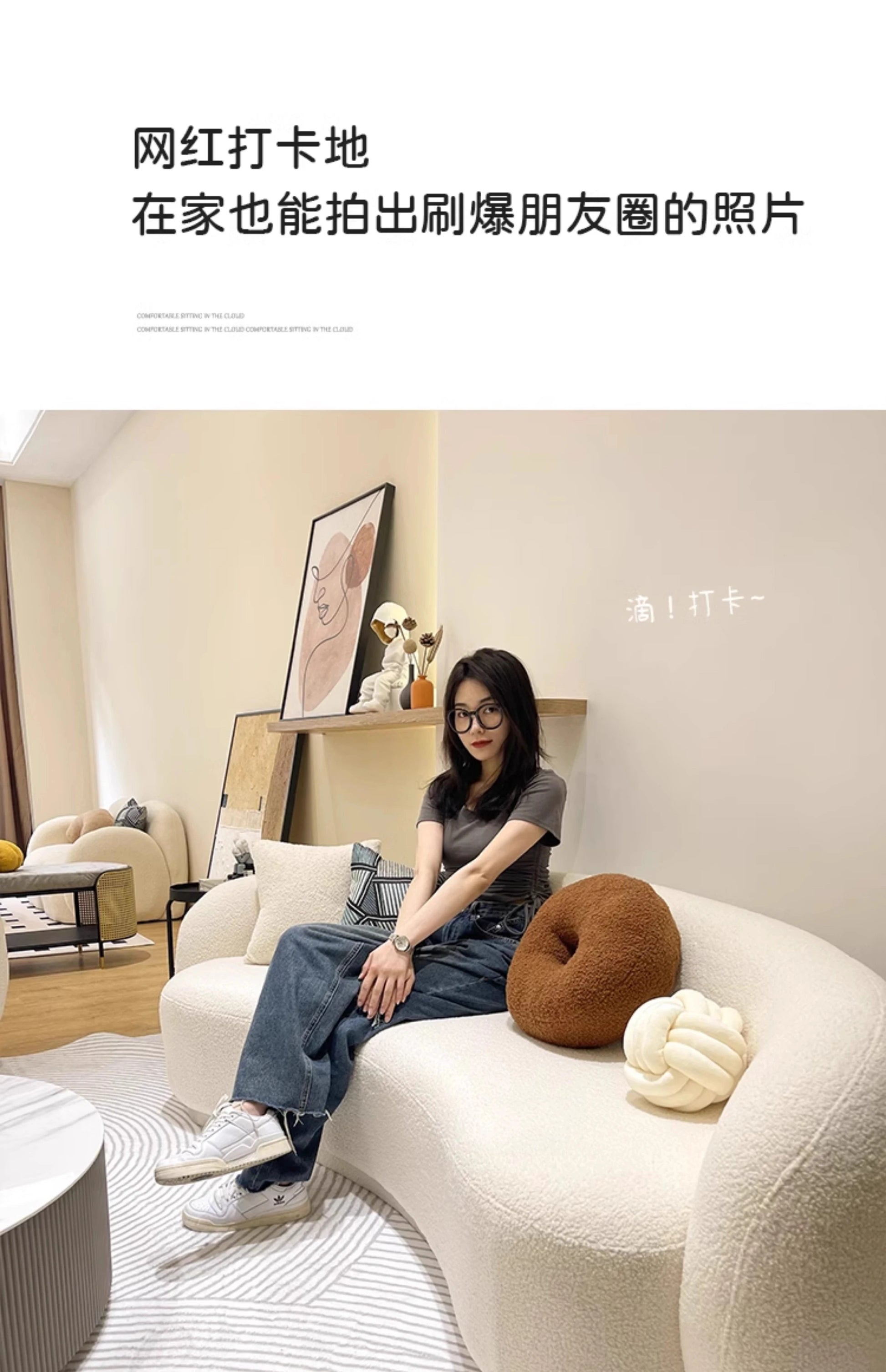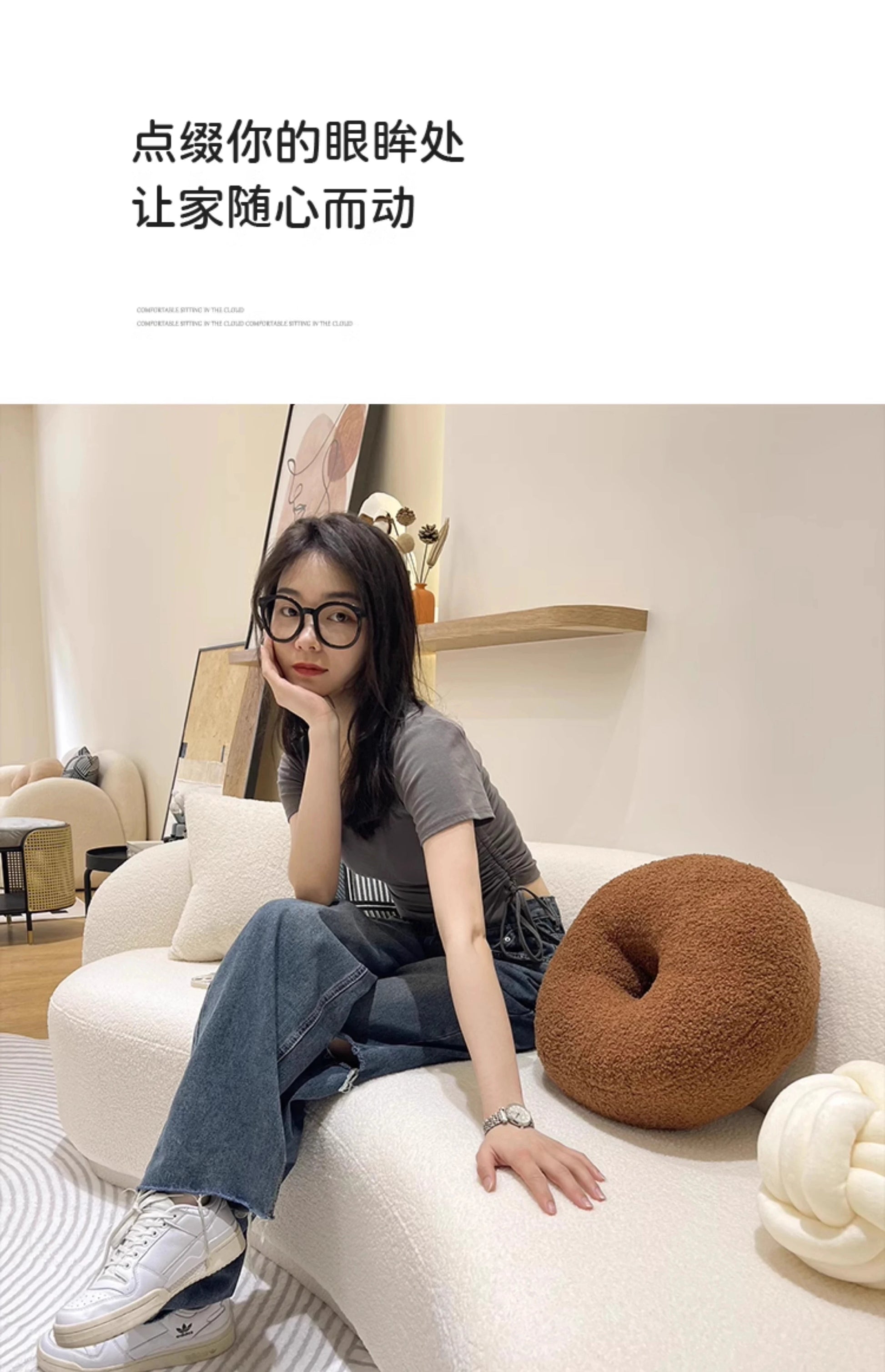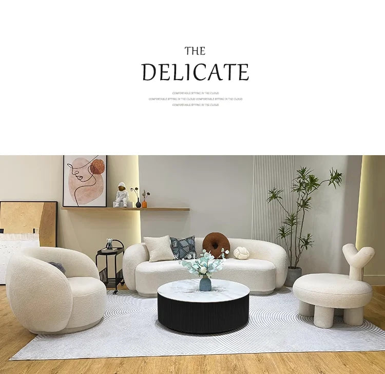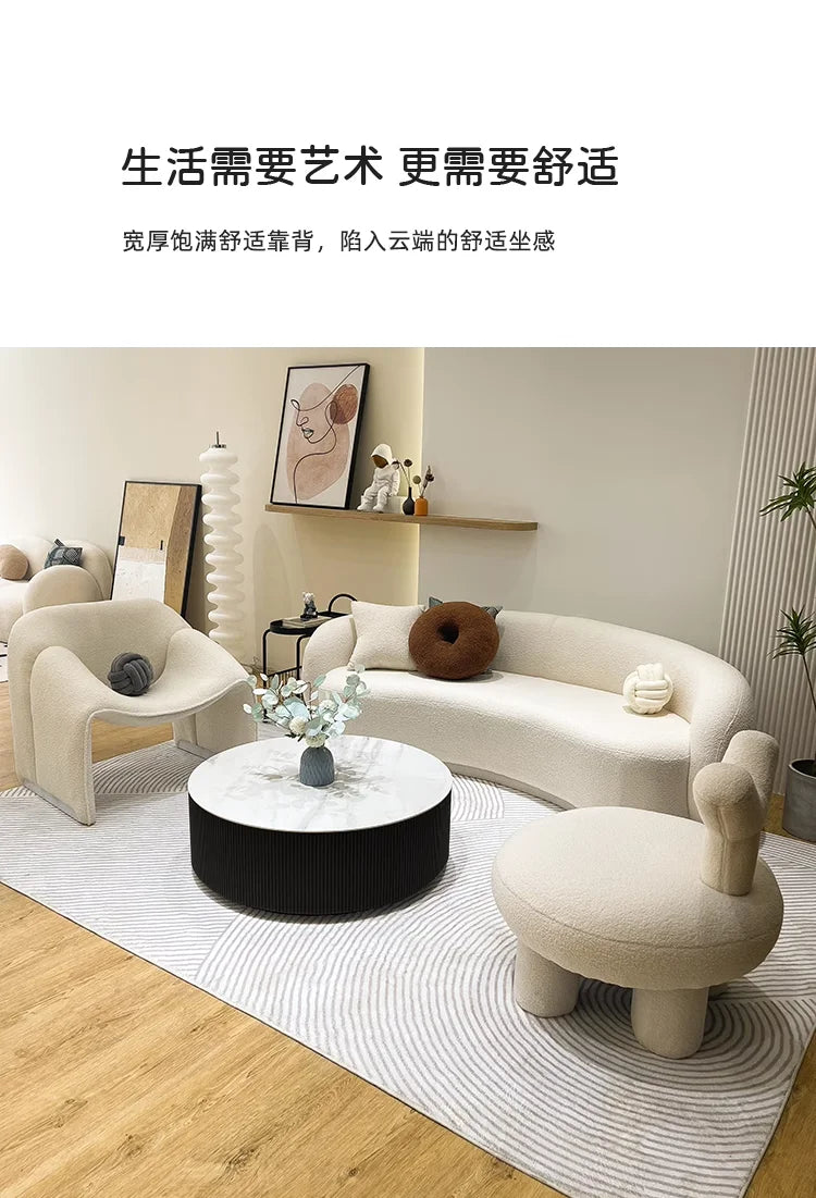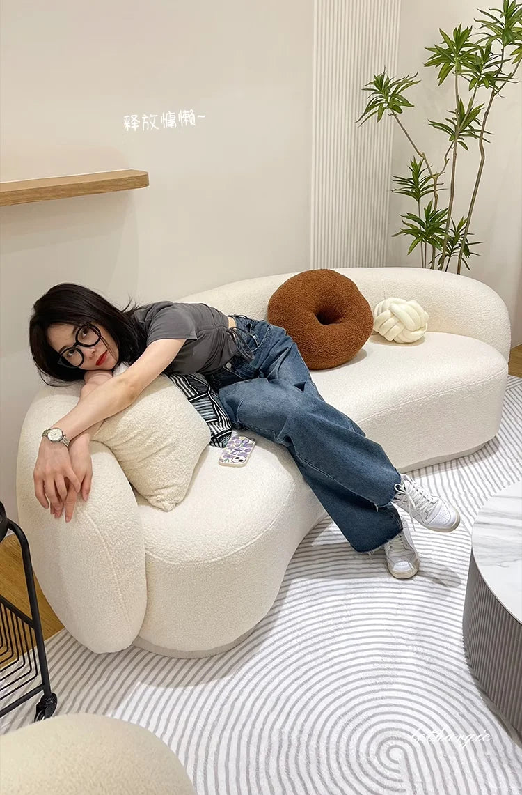 En elegant och avslappnad soffa med mjuk tygklädsel i lammullsstil – perfekt för moderna hem med känsla för lyx och komfort.
