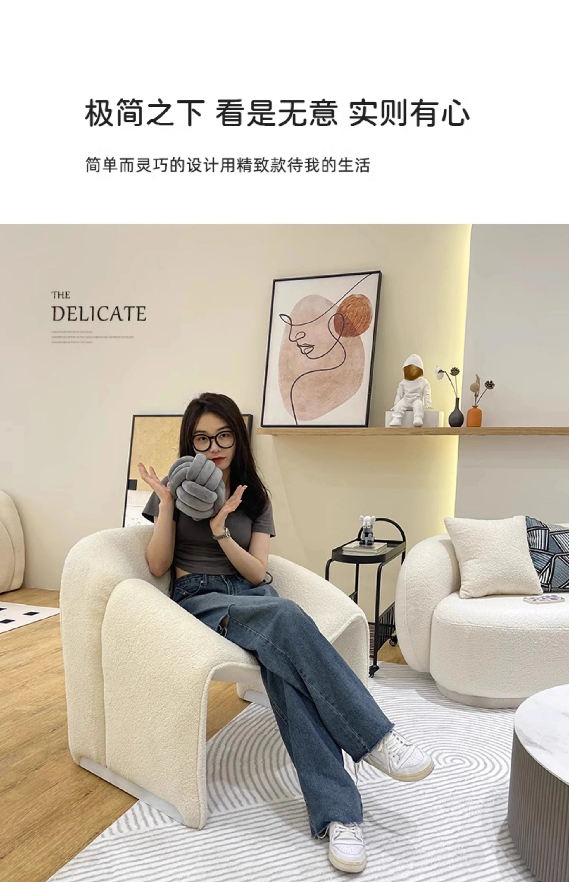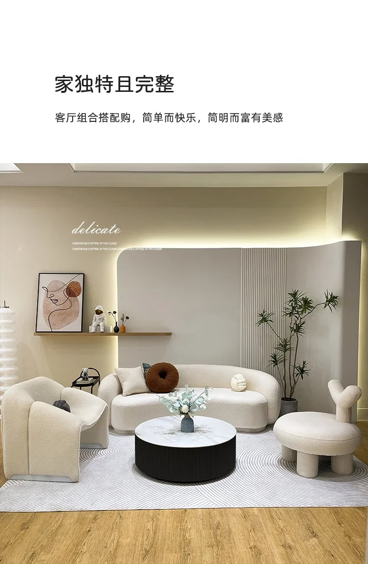 Nordisk L-formad Soffa – Vit Lounge i Lammullstyg – Modern & Romantisk Vardagsrumsdesign