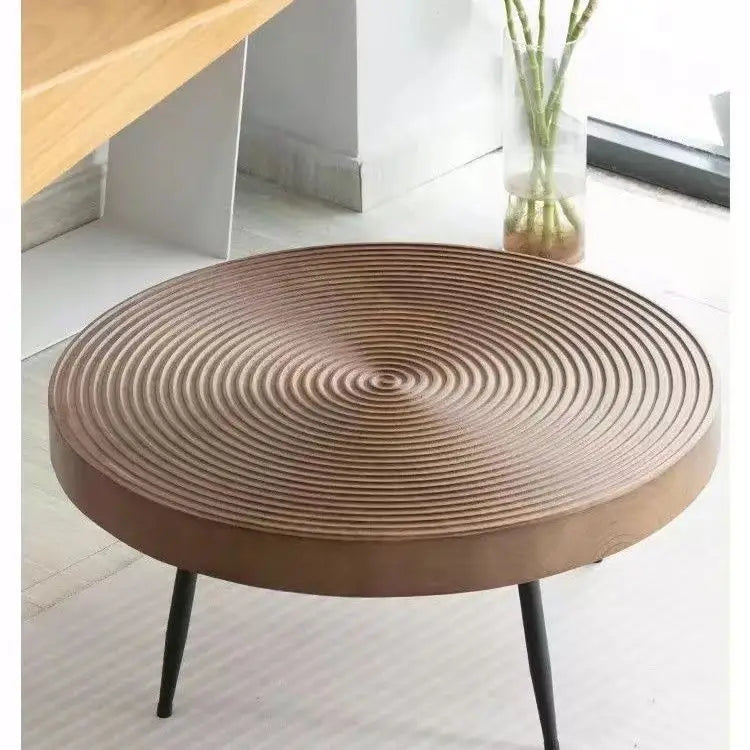 🌲 Nordiskt Soffbord i Massivt Trä – Kreativ Rund Design med Årsringar