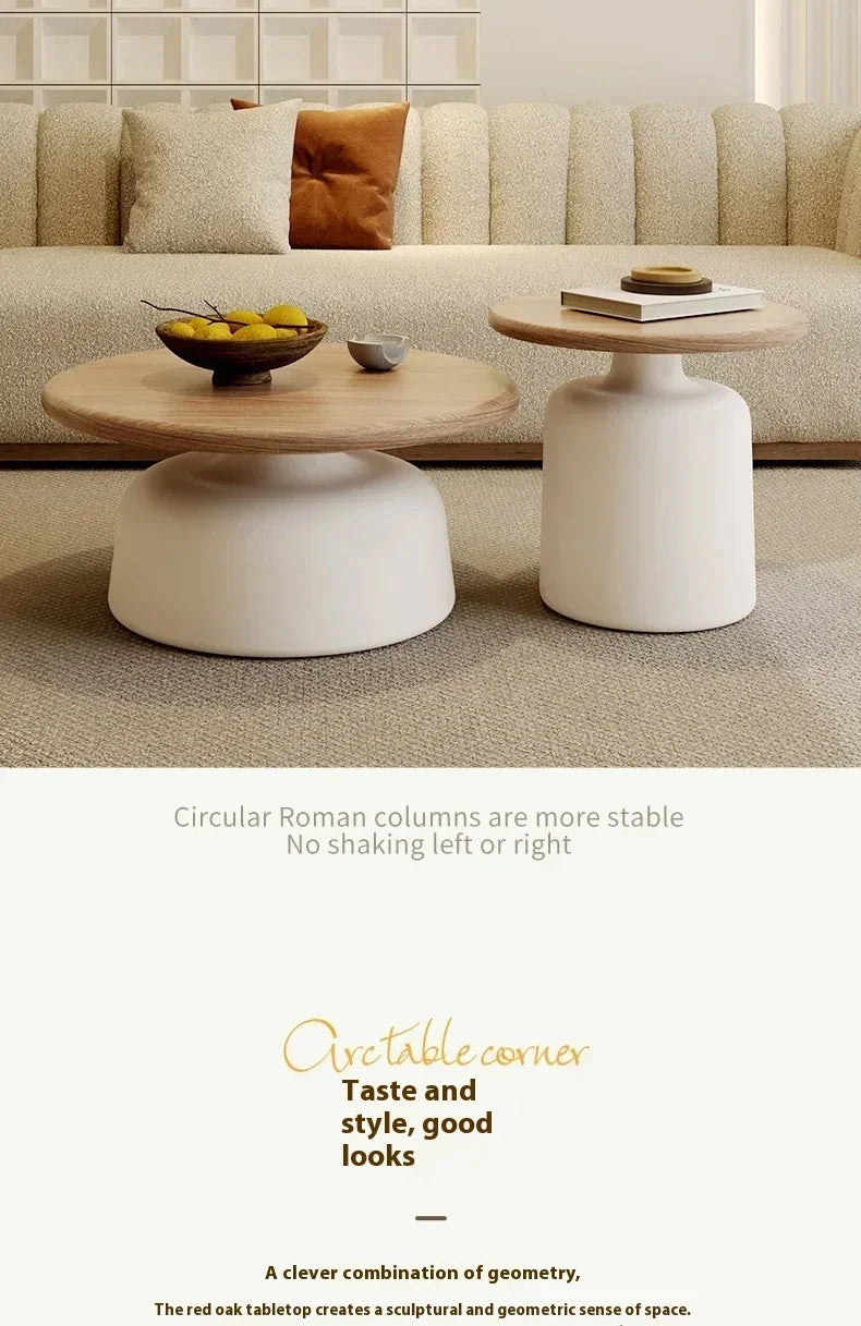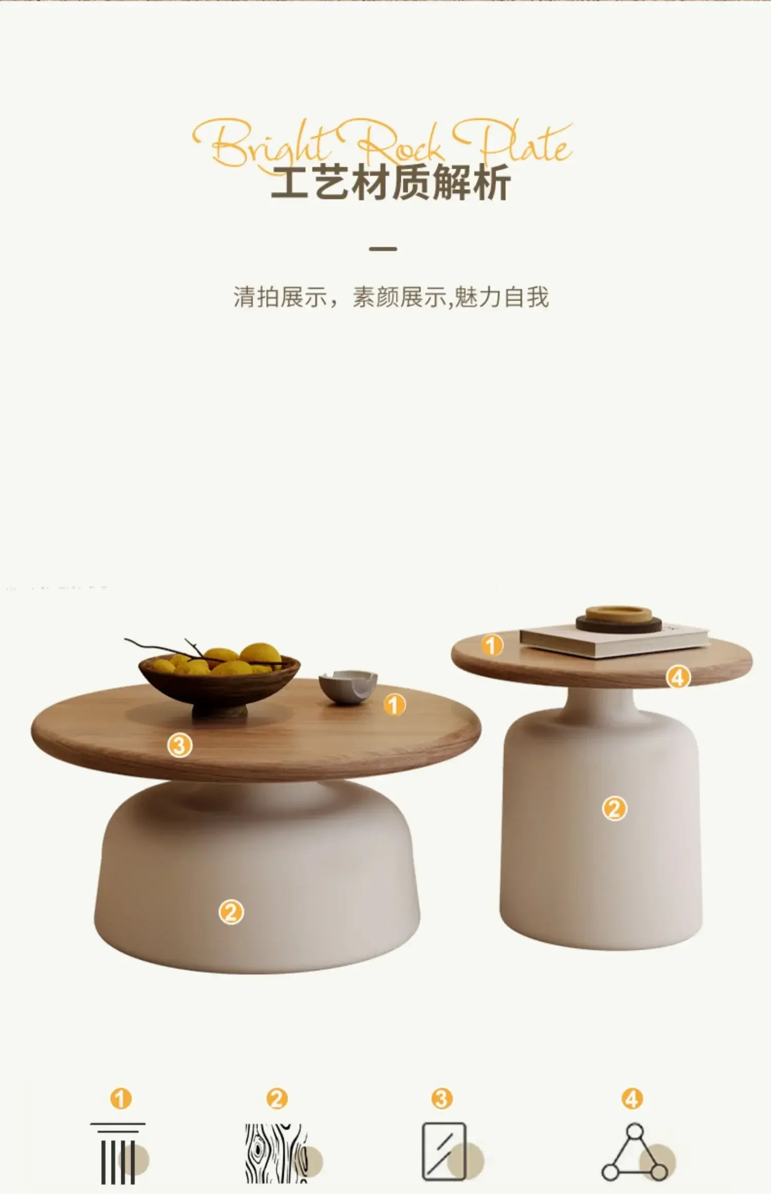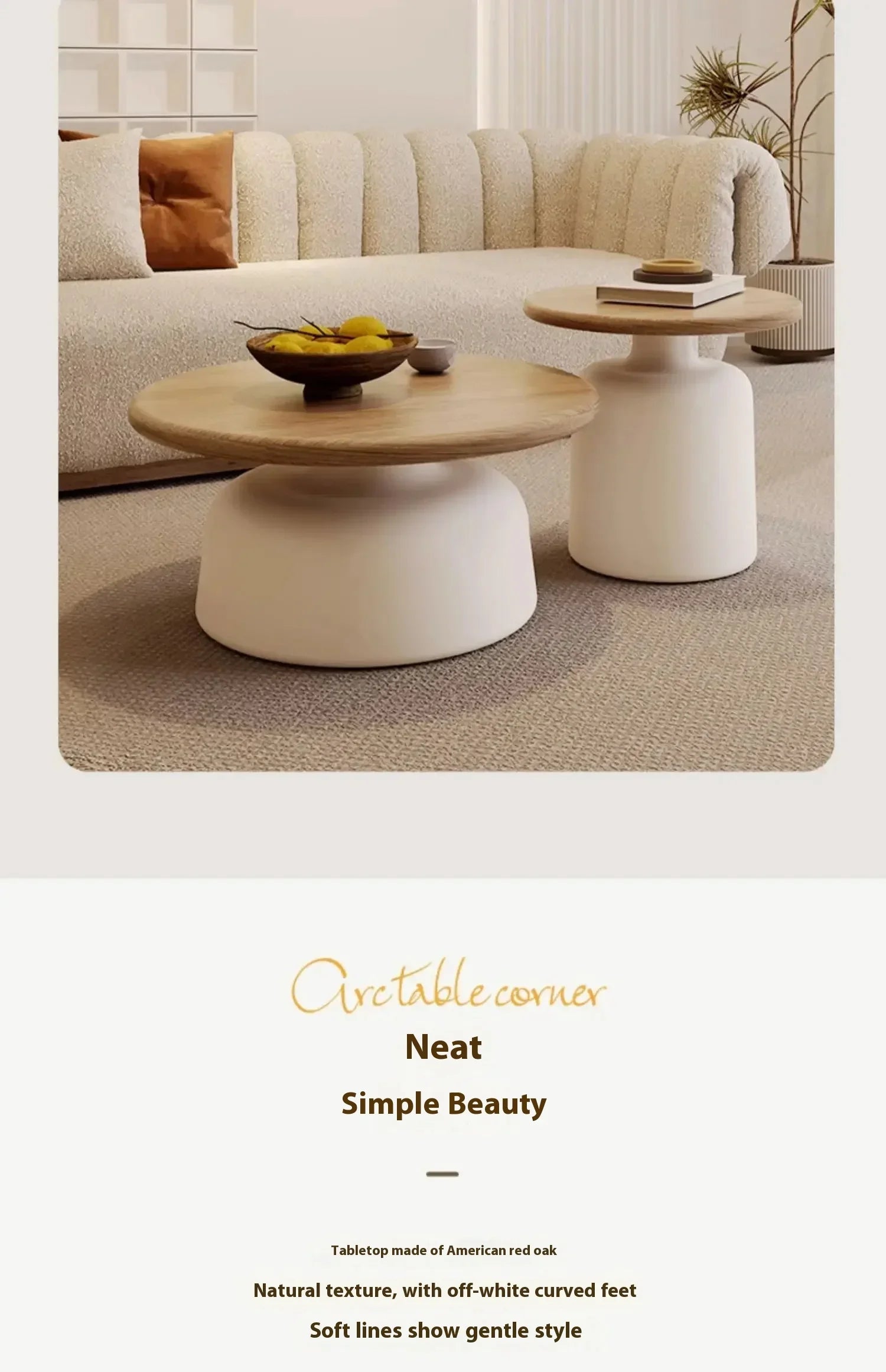 Skapa en stilren och harmonisk känsla i vardagsrummet med denna kreativa soffbordssats i nordisk stil. Med rund träskiva, vit metallbas och minimalistisk estetik passar den perfekt i moderna hem med "cream wind"-inredning.