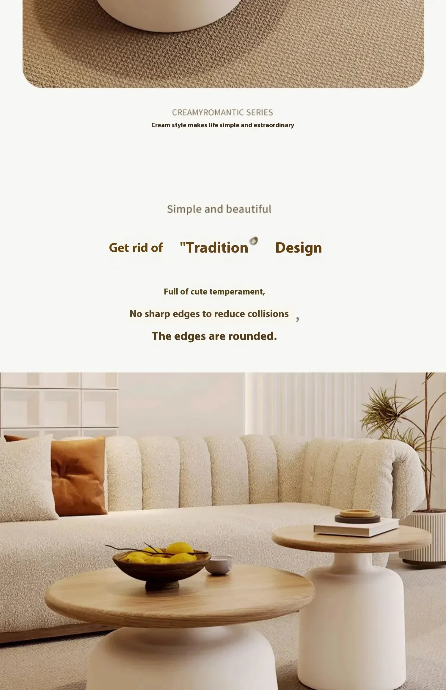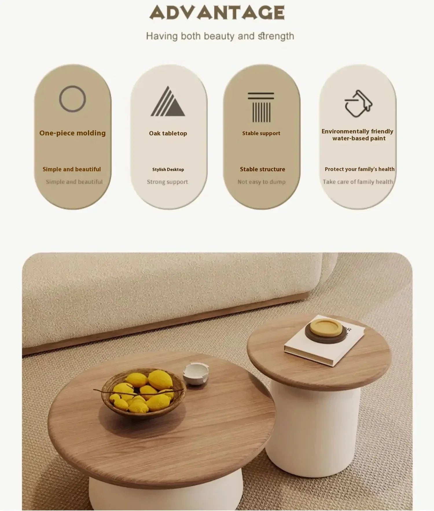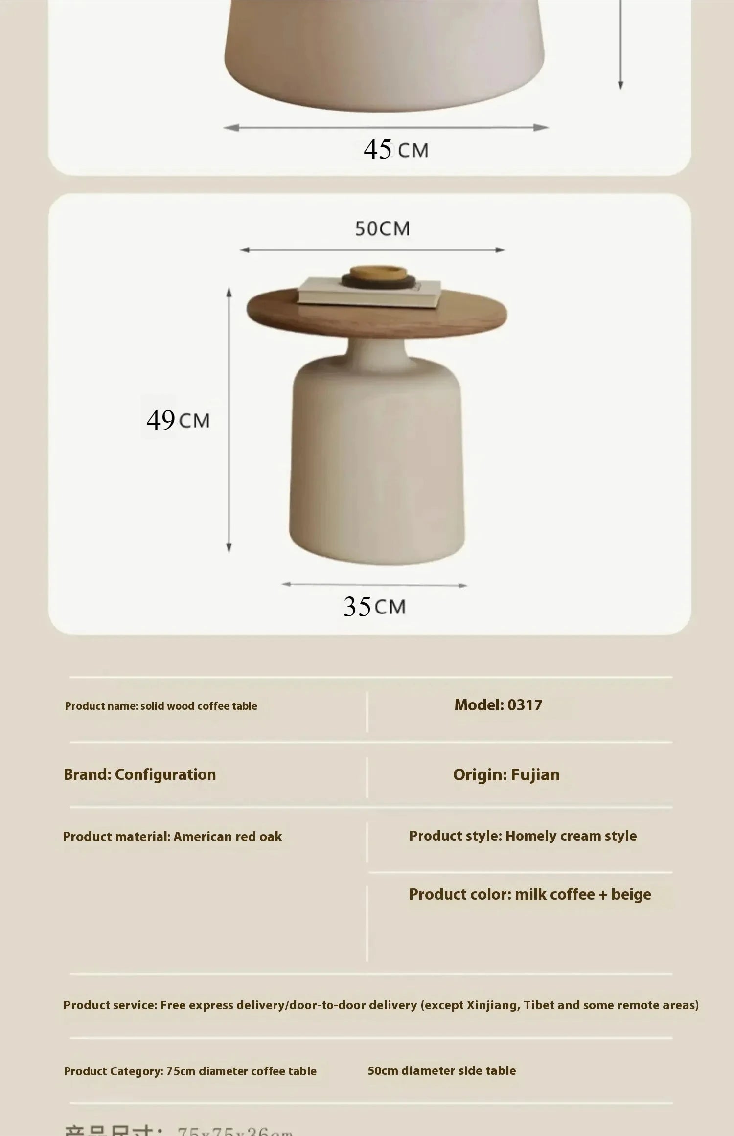 Skapa en stilren och harmonisk känsla i vardagsrummet med denna kreativa soffbordssats i nordisk stil. Med rund träskiva, vit metallbas och minimalistisk estetik passar den perfekt i moderna hem med "cream wind"-inredning.