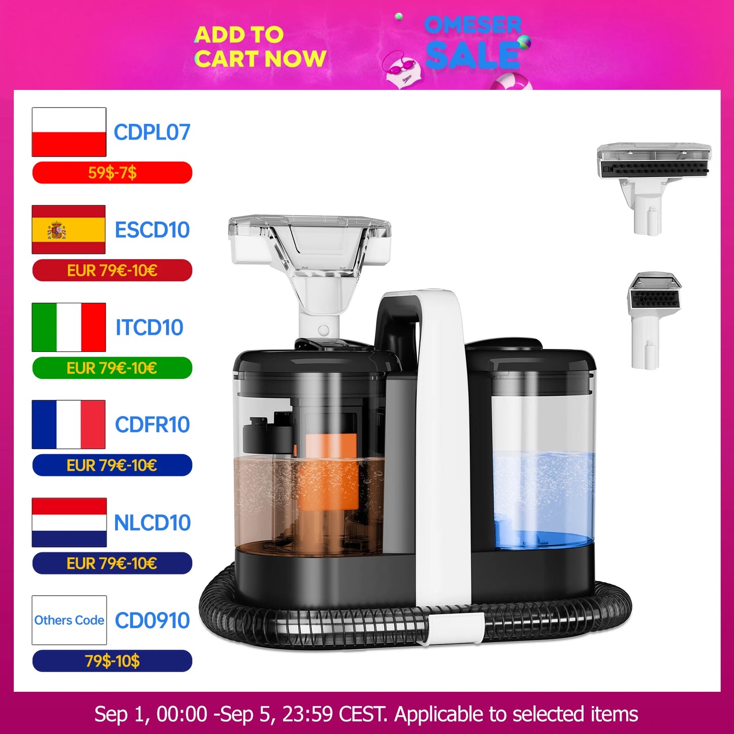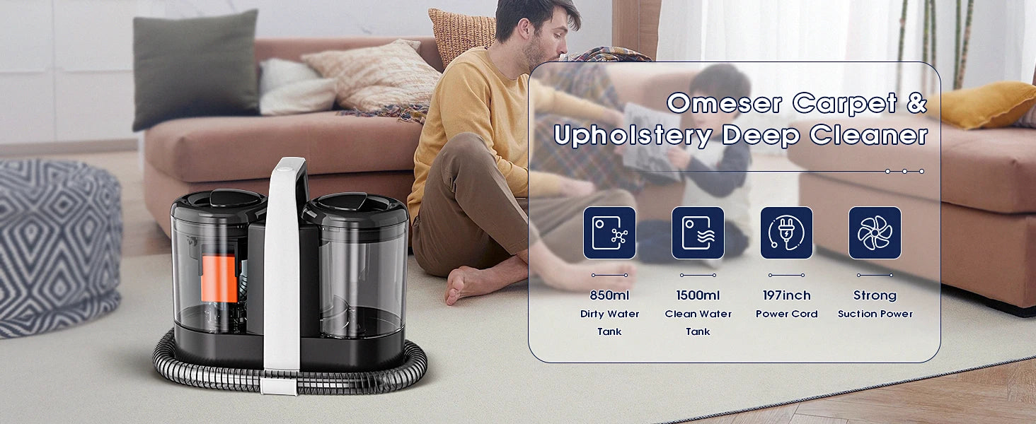Säg hejdå till envisa fläckar med OMESER® W07 – en kraftfull, portabel rengöringsmaskin för mattor, soffor, bilsäten och mer! Med uppgraderad 18KPa turbo-sugkraft, tar den enkelt bort vinfläckar, husdjursolyckor, smuts och fett – snabbt och effektivt.