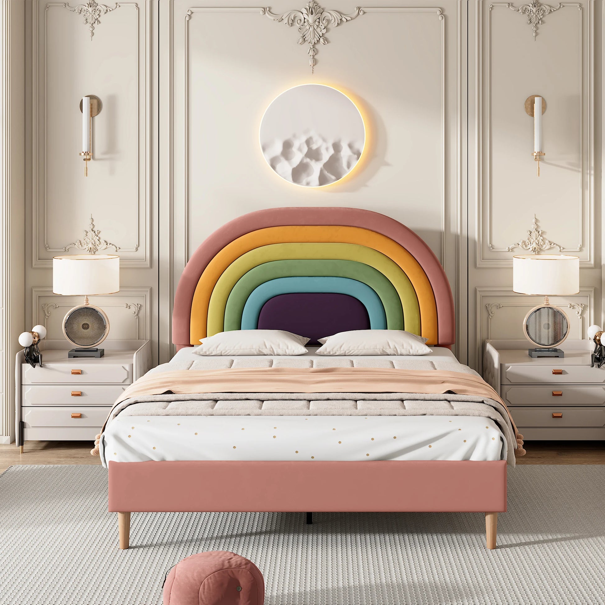 Tidlös design: Den stoppade sängen har en klassisk men modern look. Passar de flesta inredningsstilar och får små rum att kännas rymligare. Det regnbågsformade huvudgaveln gör sängen unik.