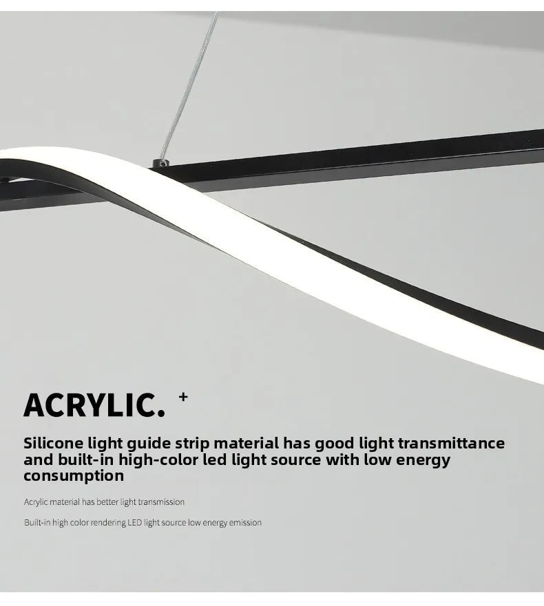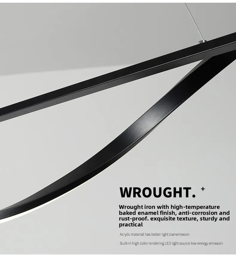 En elegant och konstnärligt böjd taklampa med nordisk touch, perfekt för långa matbord, restauranger, hotellrum eller moderna hem. Den minimalistiska formen kombinerar funktion med stil.