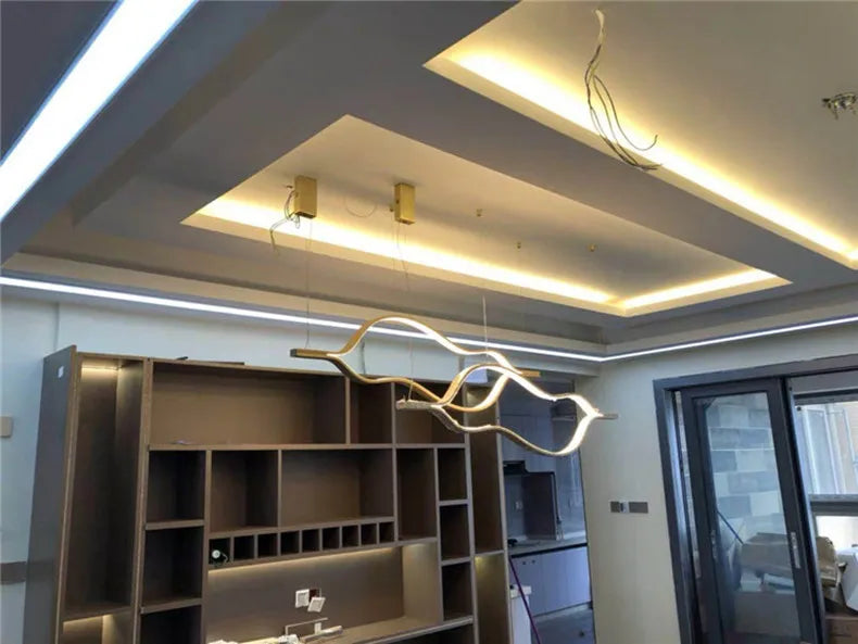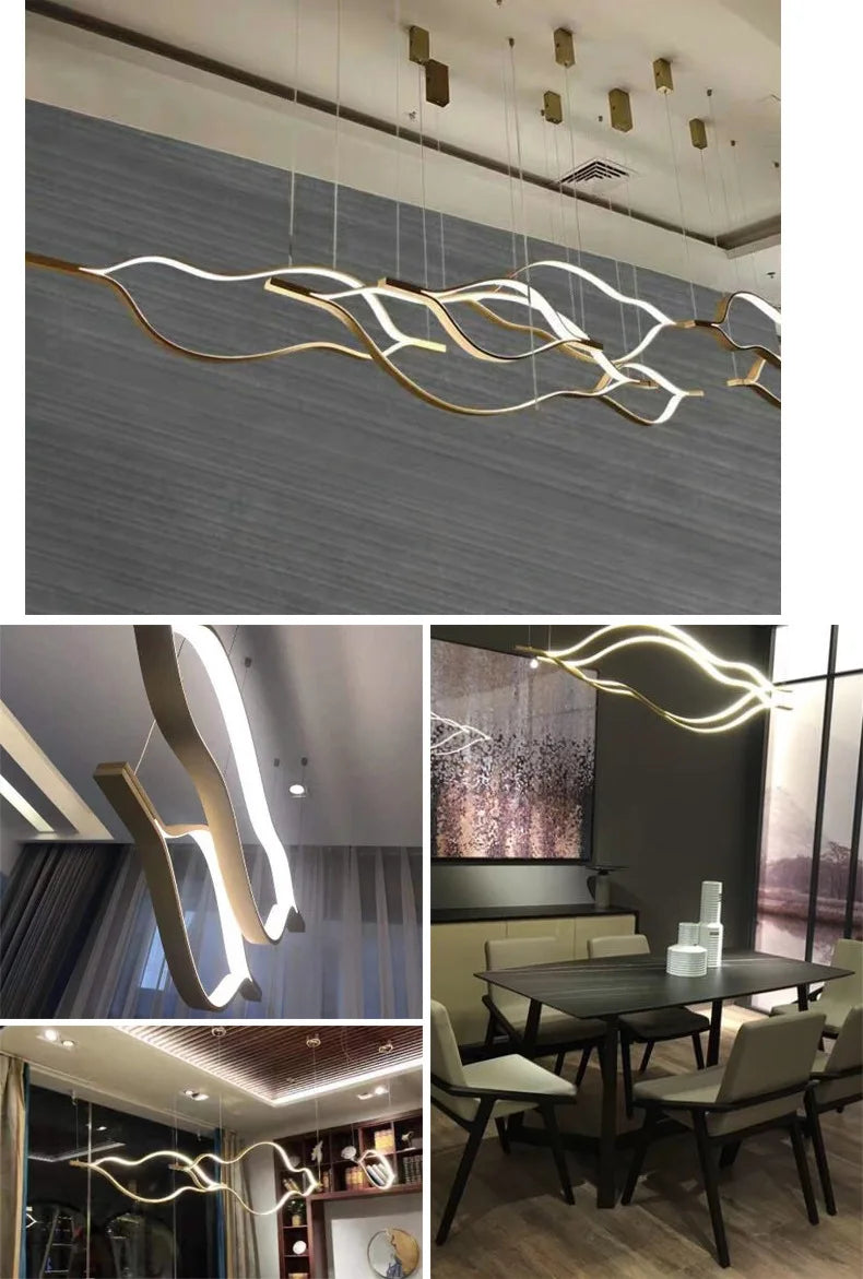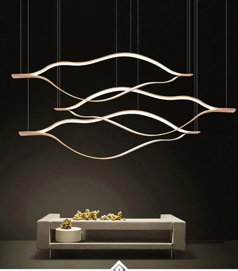 En kreativ och lyxig vågformad taklampa i aluminium – perfekt för moderna hem, restauranger, hotell eller klädbutiker med stil.