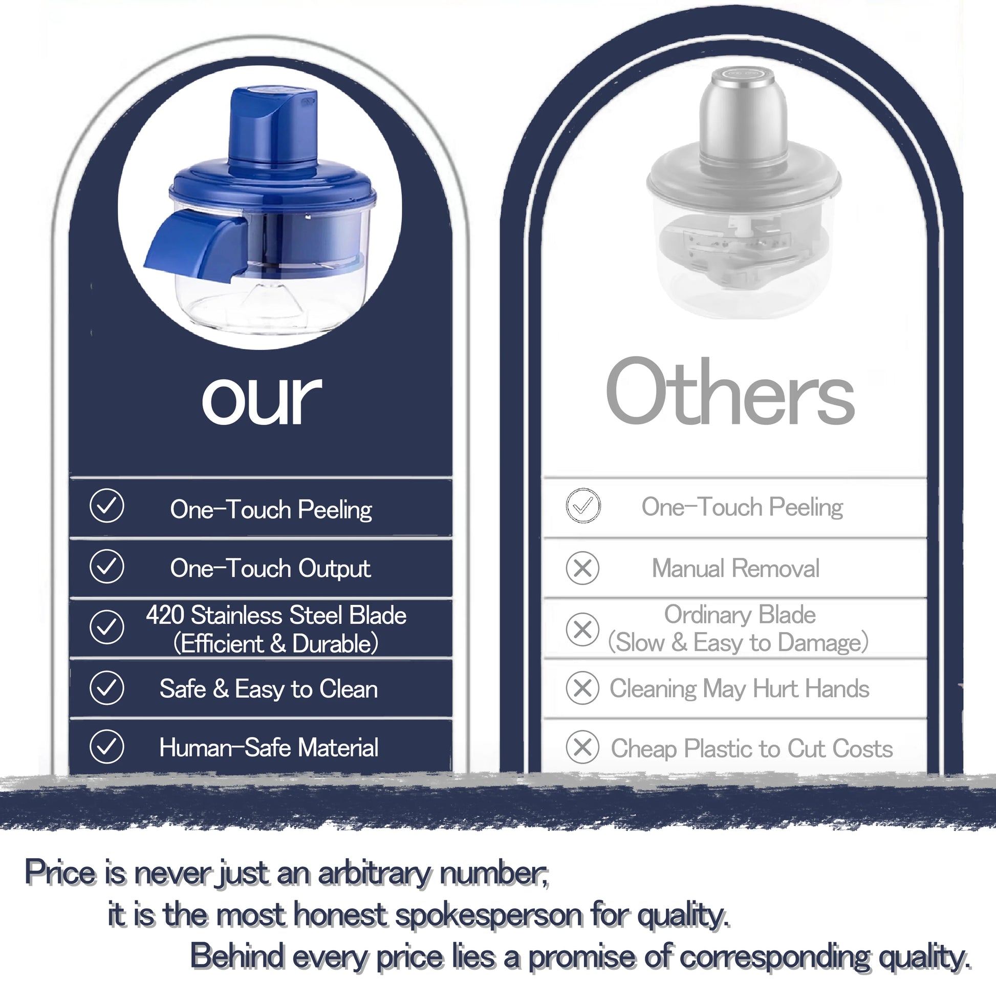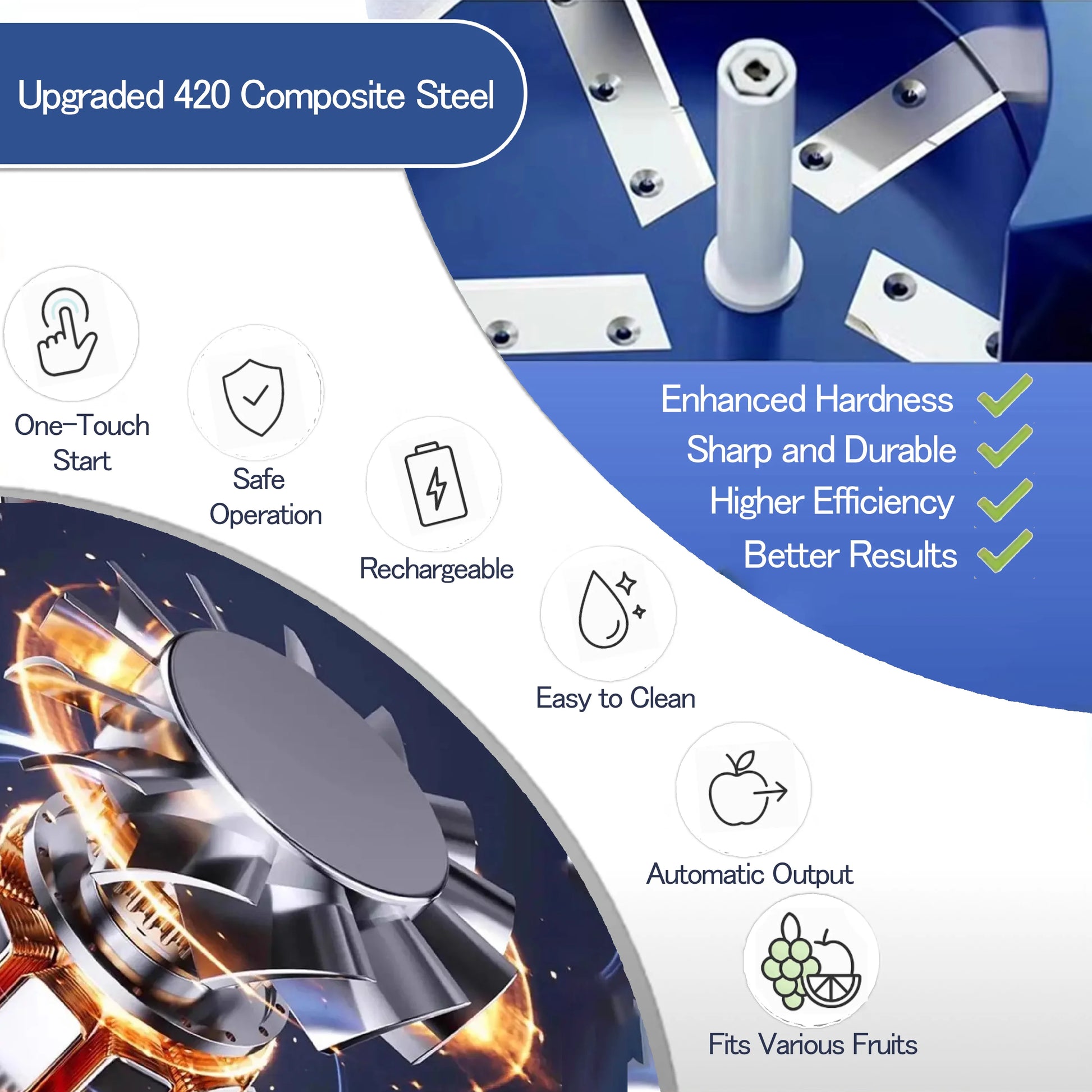 ⚡ Kraftfull borstlös motor (50W) Ger hög hastighet och kan skala druvor eller körsbärstomater på bara 20 sekunder.