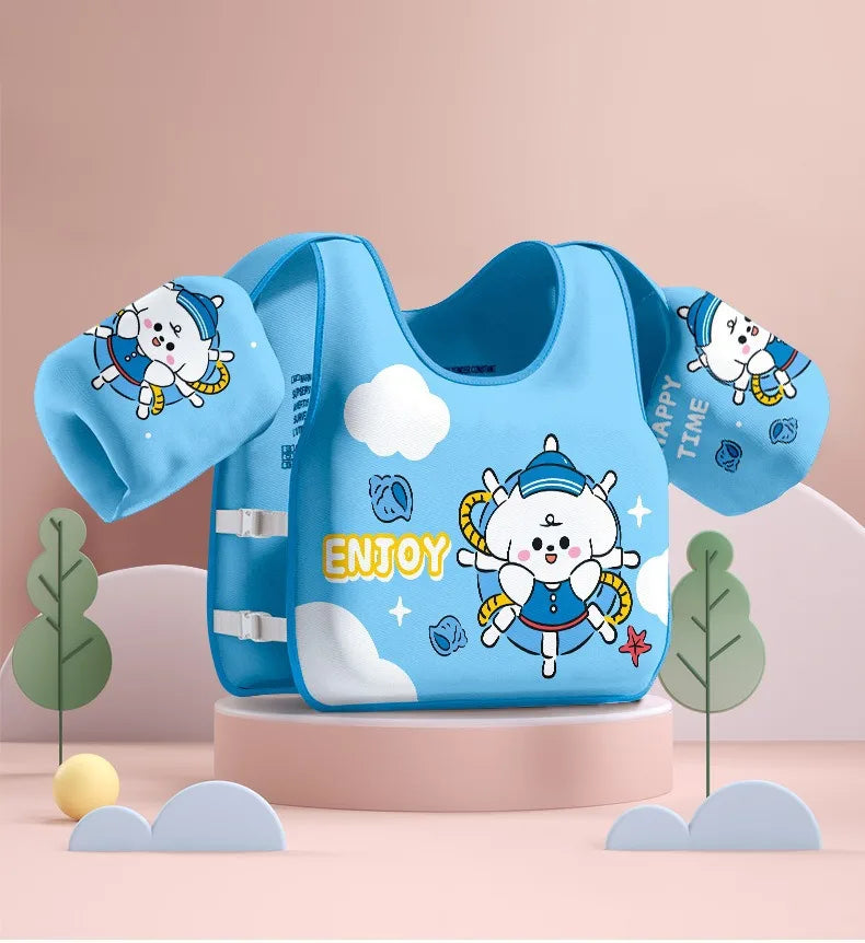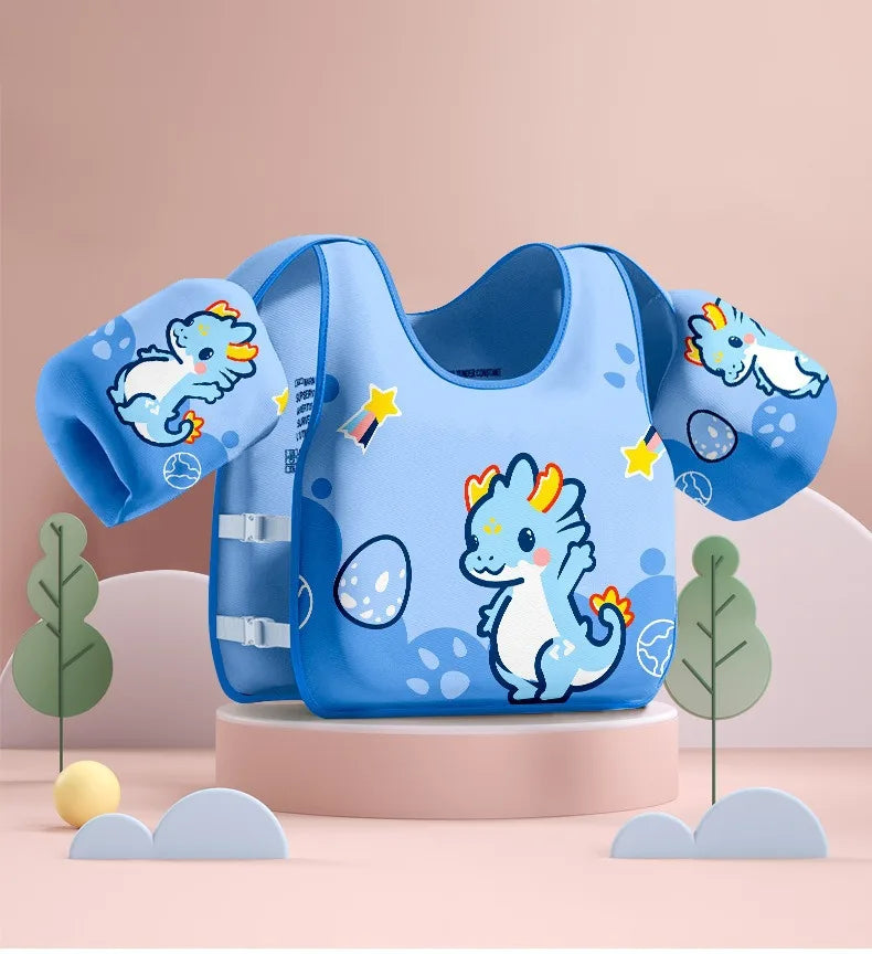 Denna uppblåsbara simväst är tillverkad av slitstarkt nylon och mjukt EPE-skum, perfekt för barn mellan 3–9 år (upp till 25 kg). Med dubbla spännen för extra säkerhet och söta tecknade motiv som gör simning roligare och tryggare.