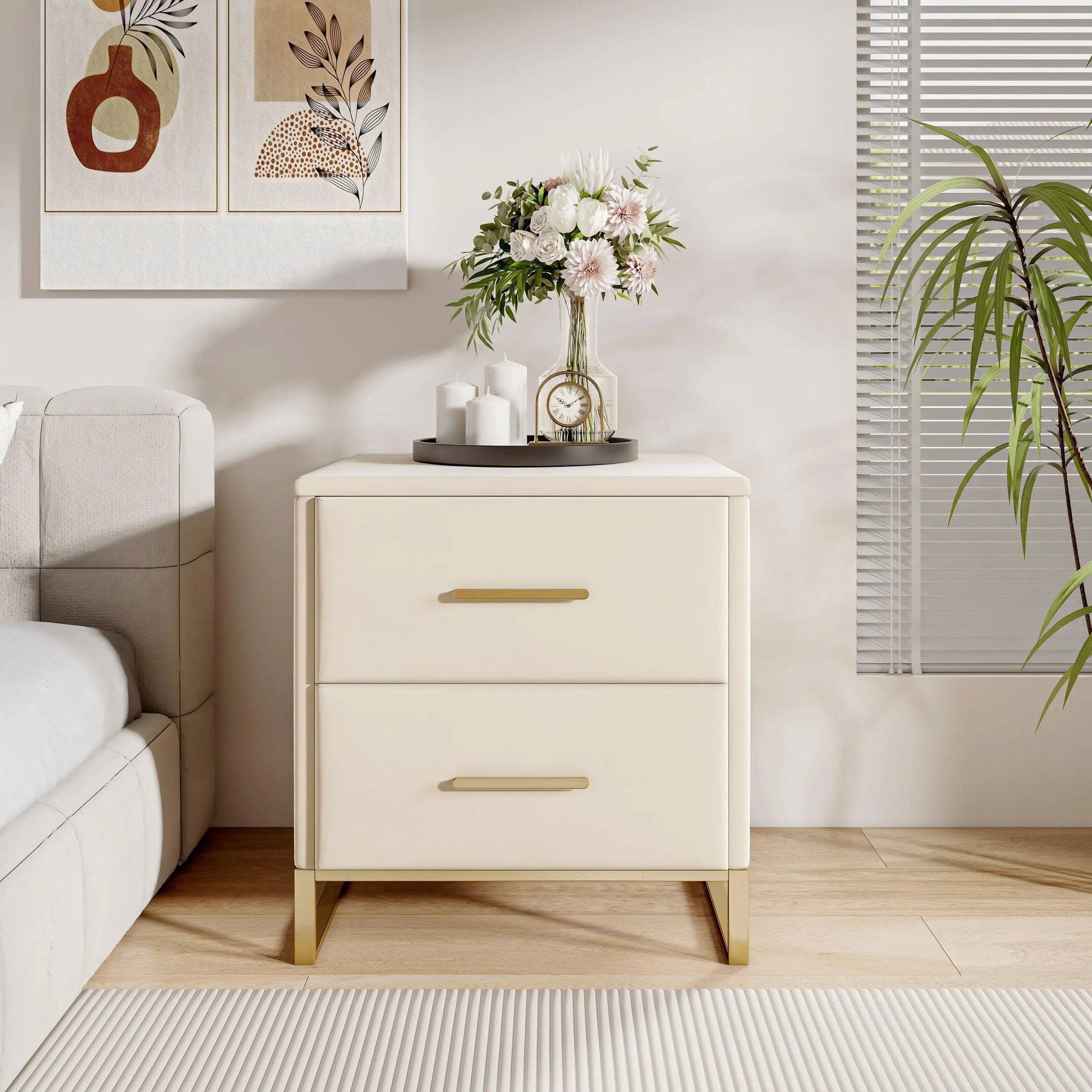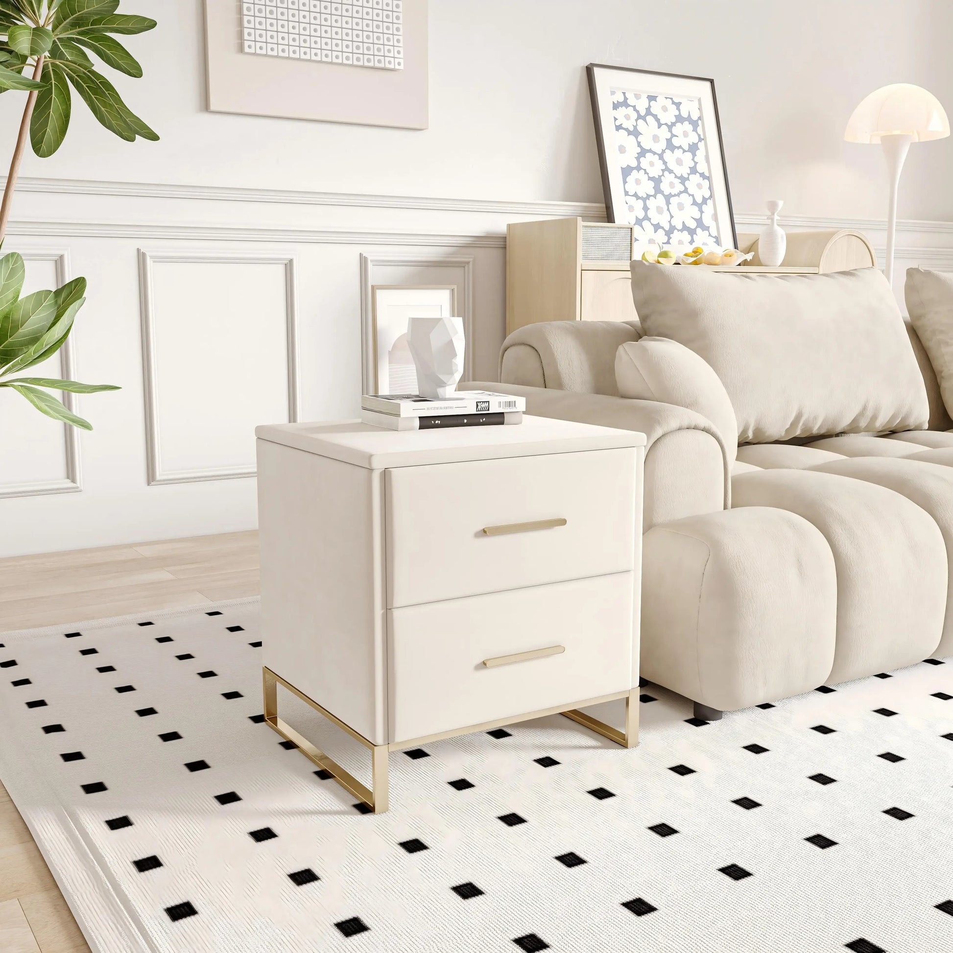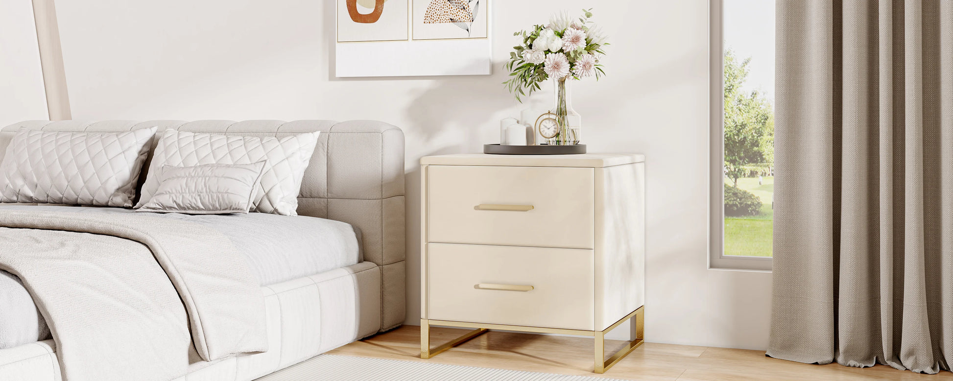 Rosahqnda Sängbord 2-pack – Sammet & Guld för Sovrum, Vardagsrum & Kontor