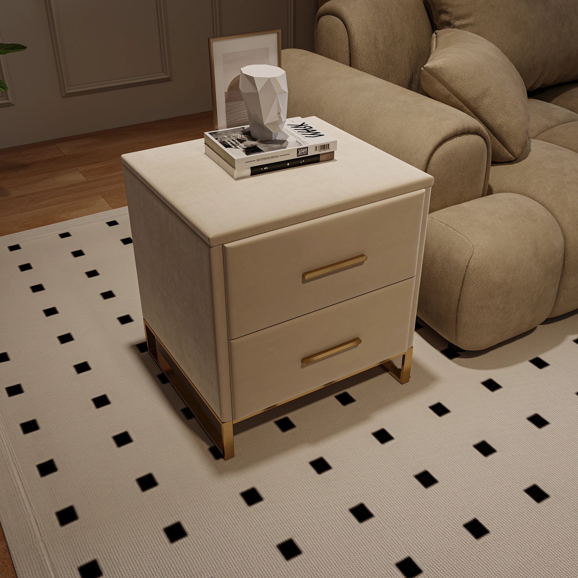 💎 Lyxig design: Guldfärgad metallbas ger stabilitet och en exklusiv touch – lyfter hela möbelns uttryck.