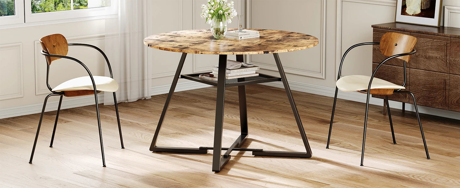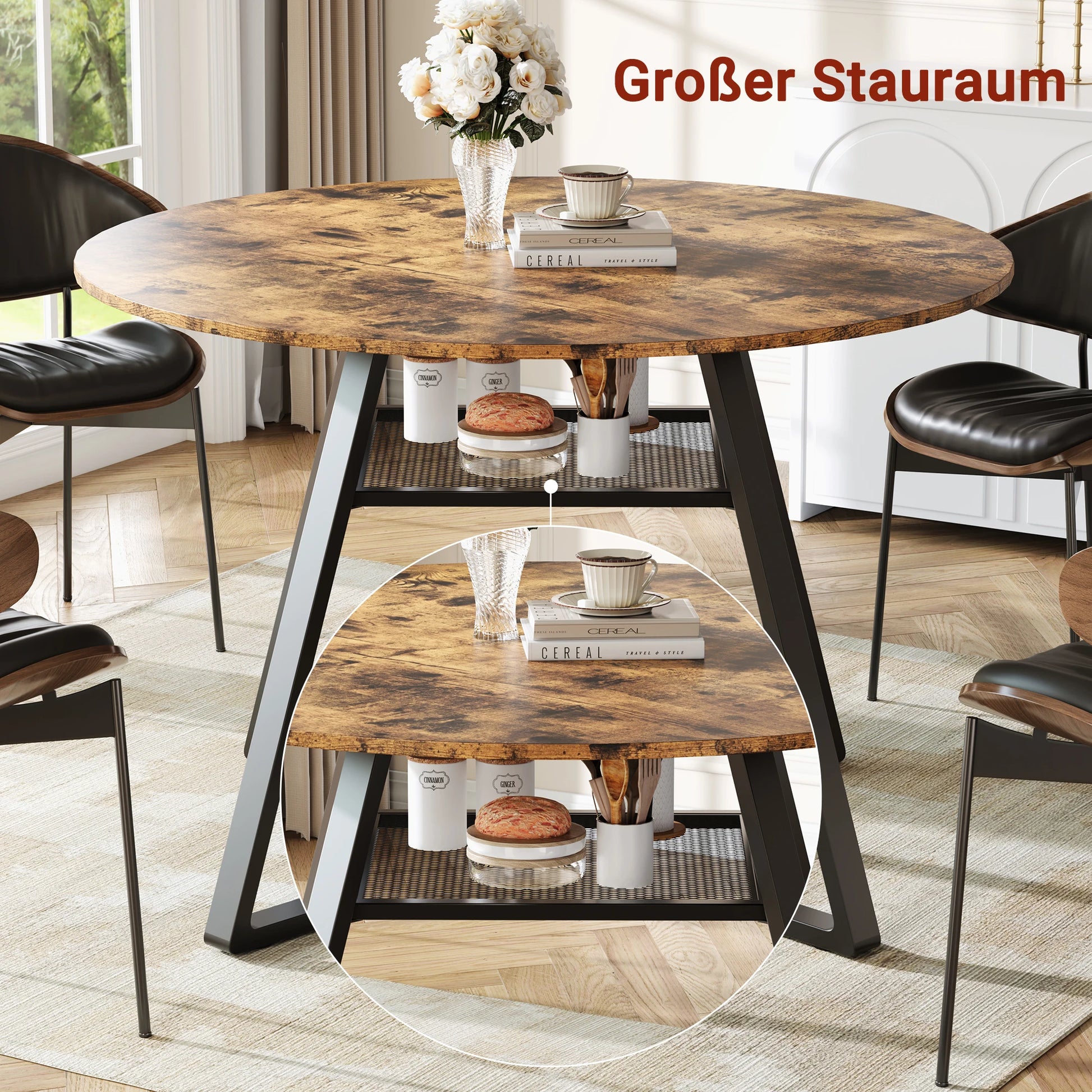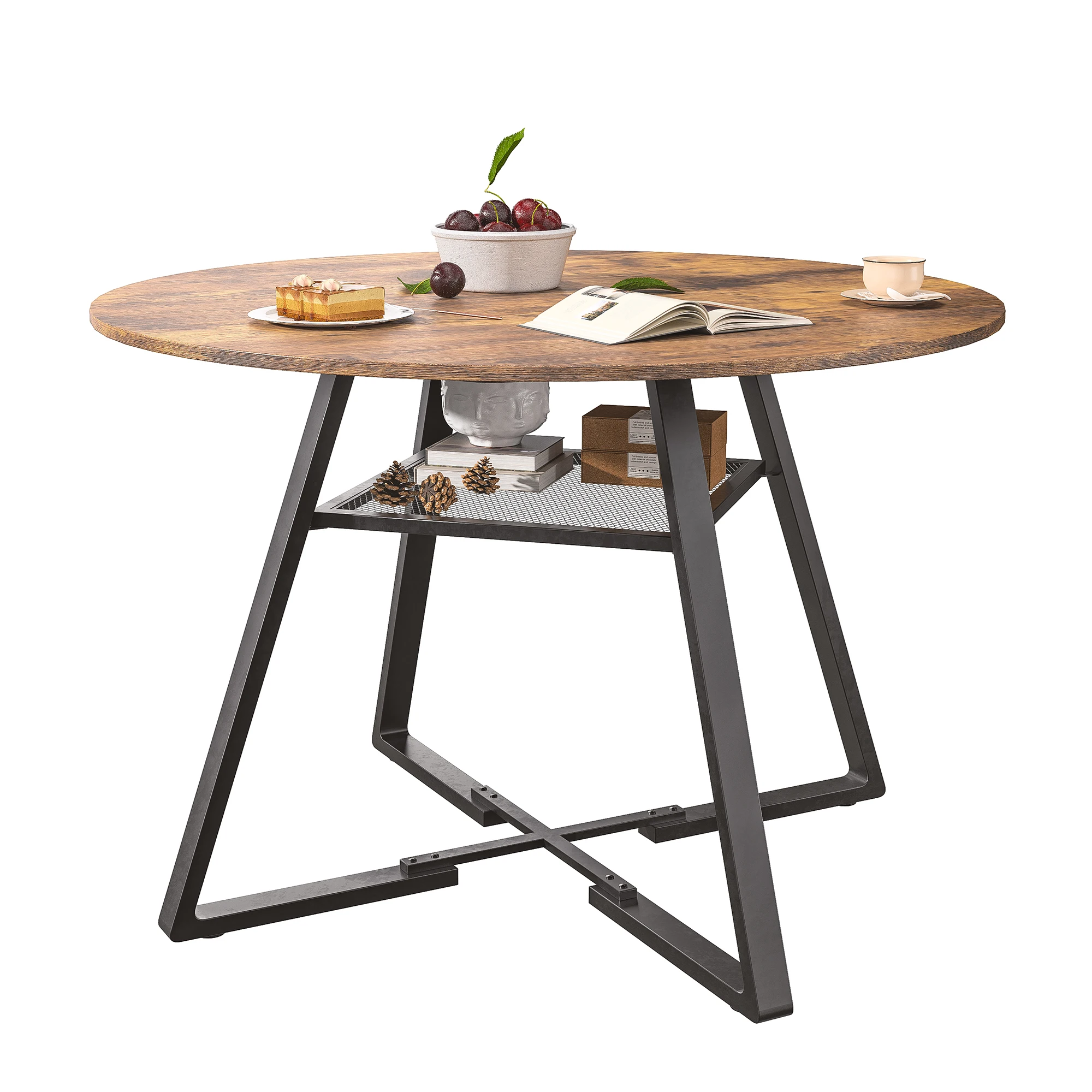 Rosahqnda Rund Matbord med Hylla och Metallben – Industriell Design för Kök, Vardagsrum och Matsal (120 cm, 4–6 personer