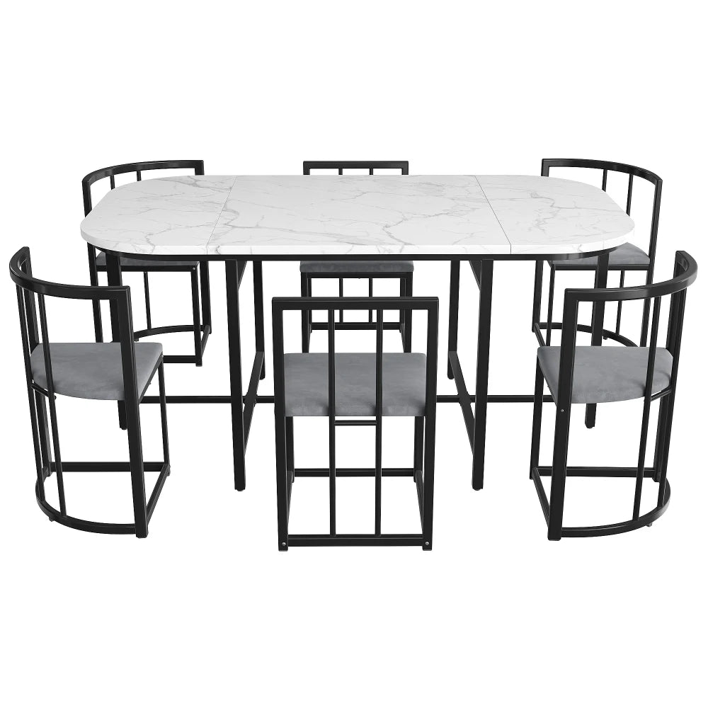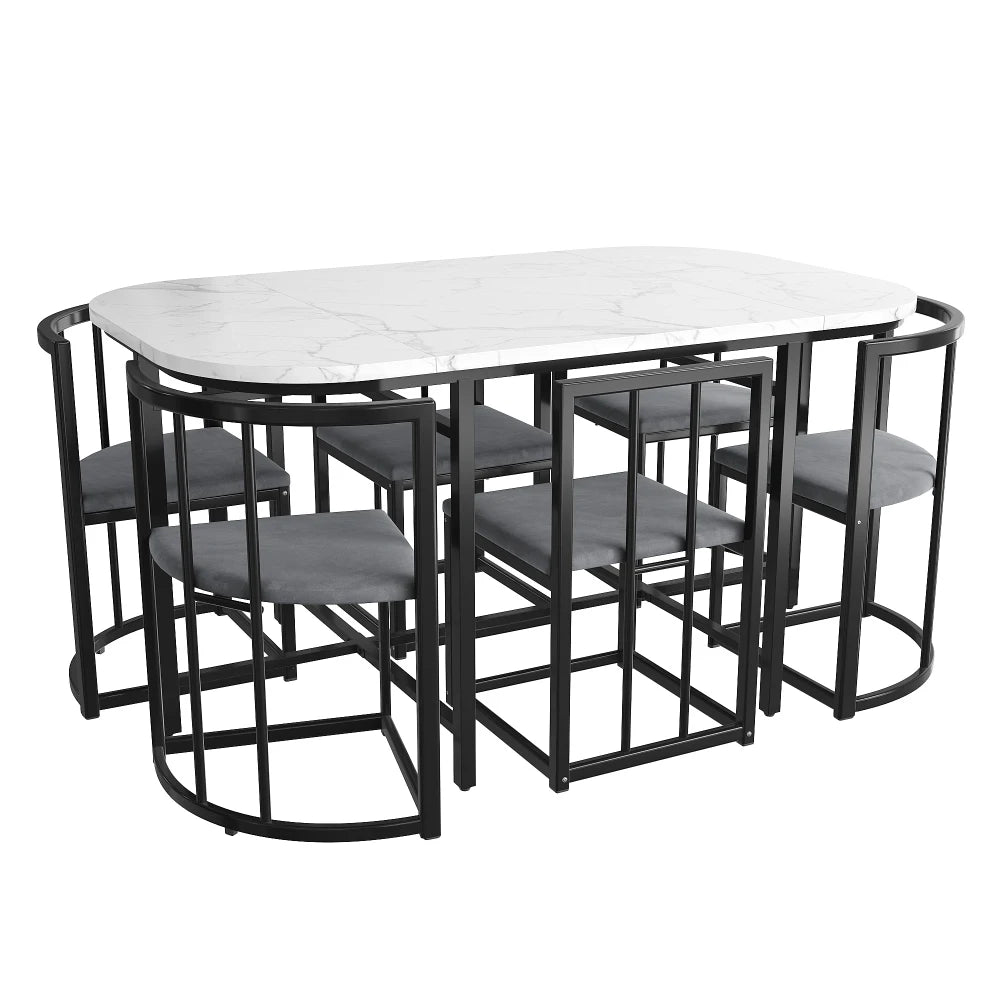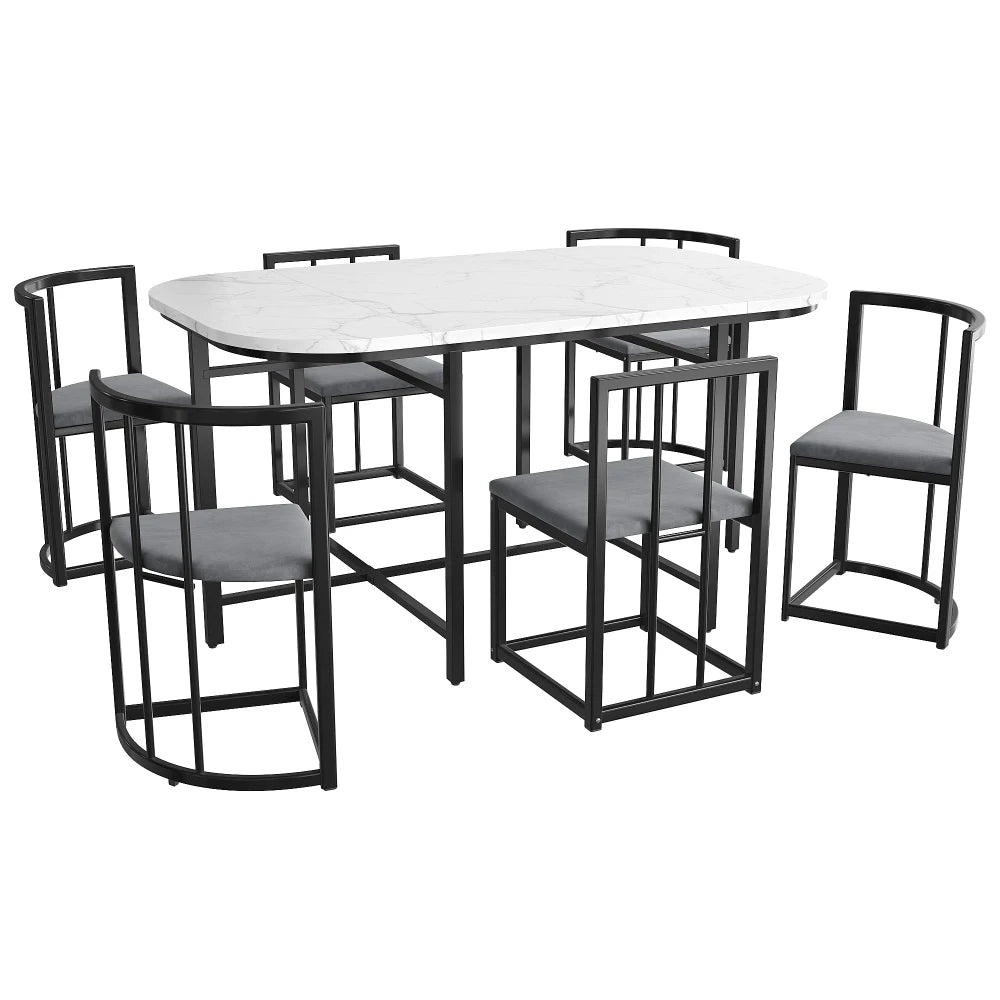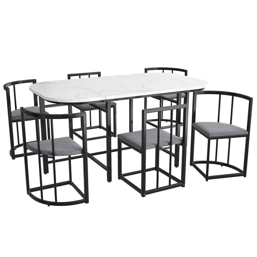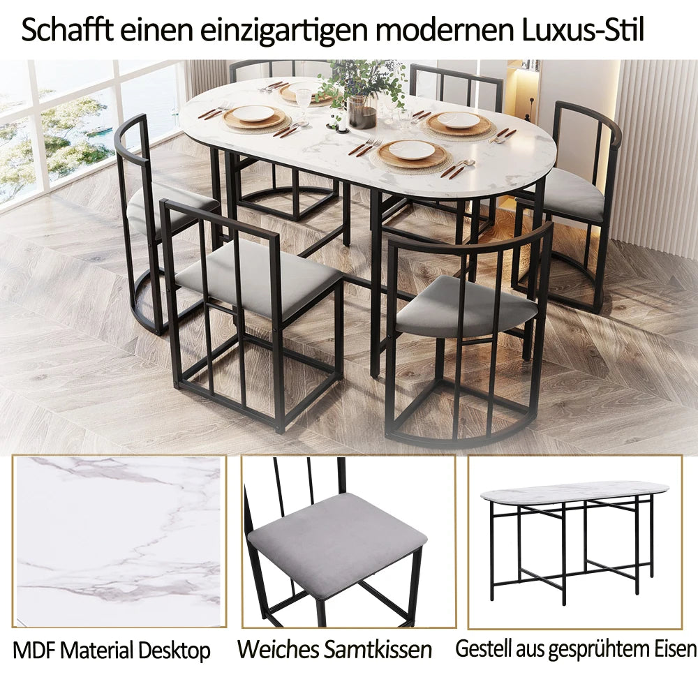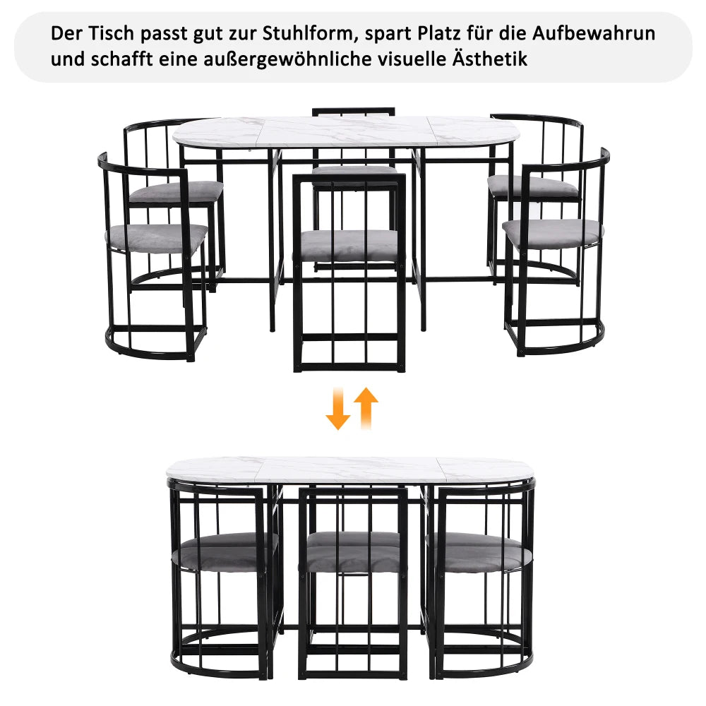 🎁 Komplett set: Bord + 6 stolar – allt du behöver för en komplett matplats.