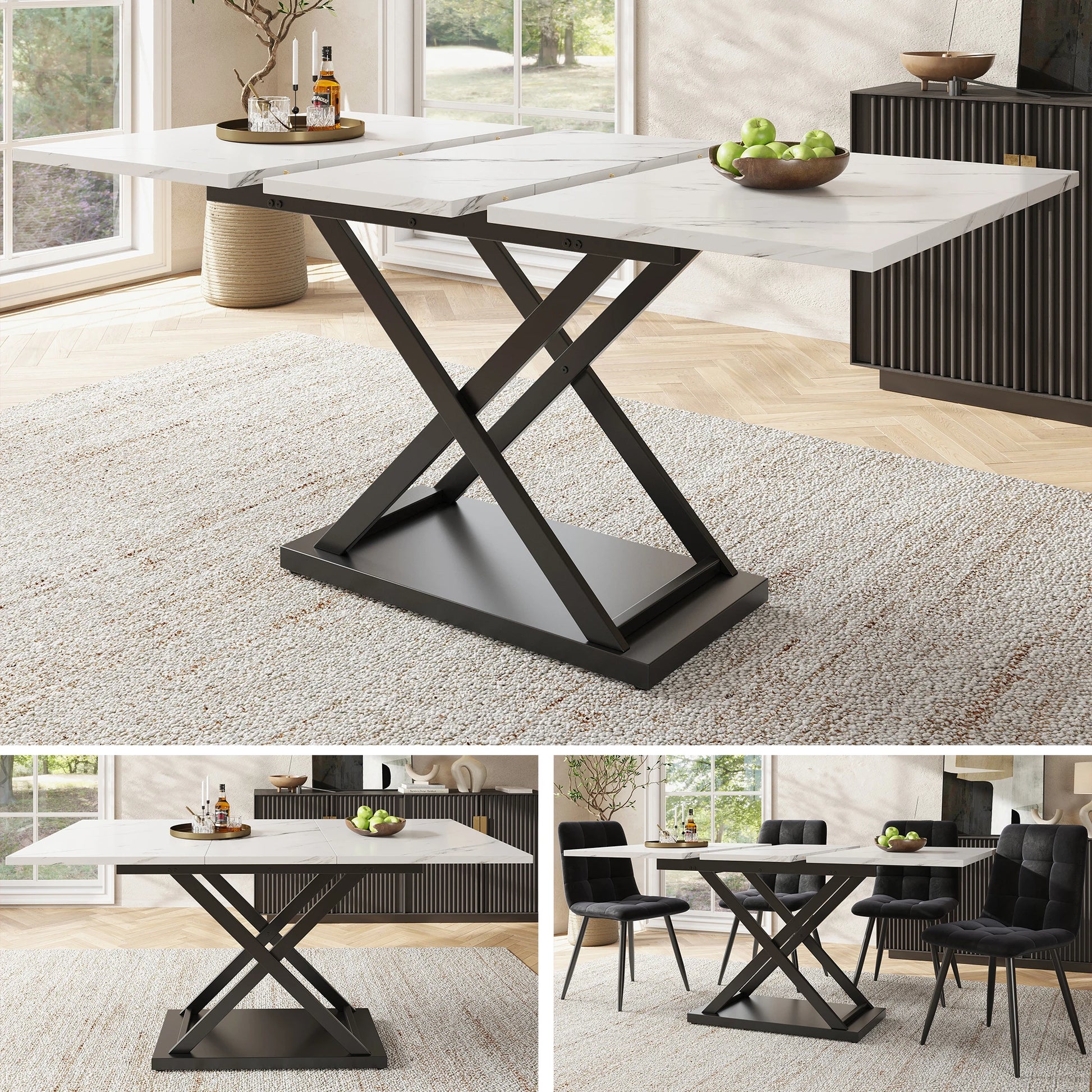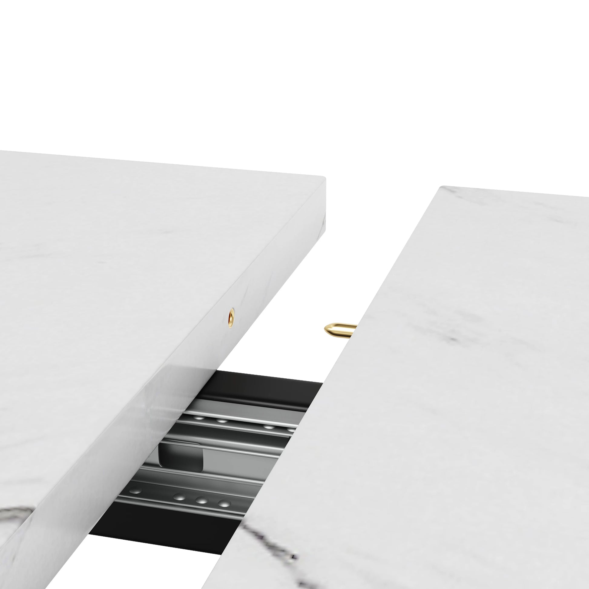 Förlängningsbart Matbord – Vit Marmorskiva & Svarta Järnben i Modern Design