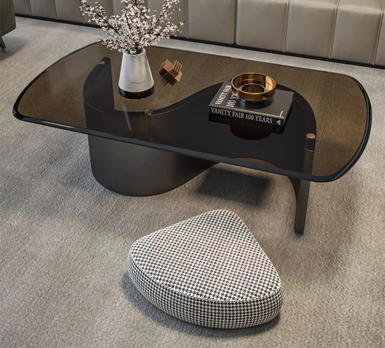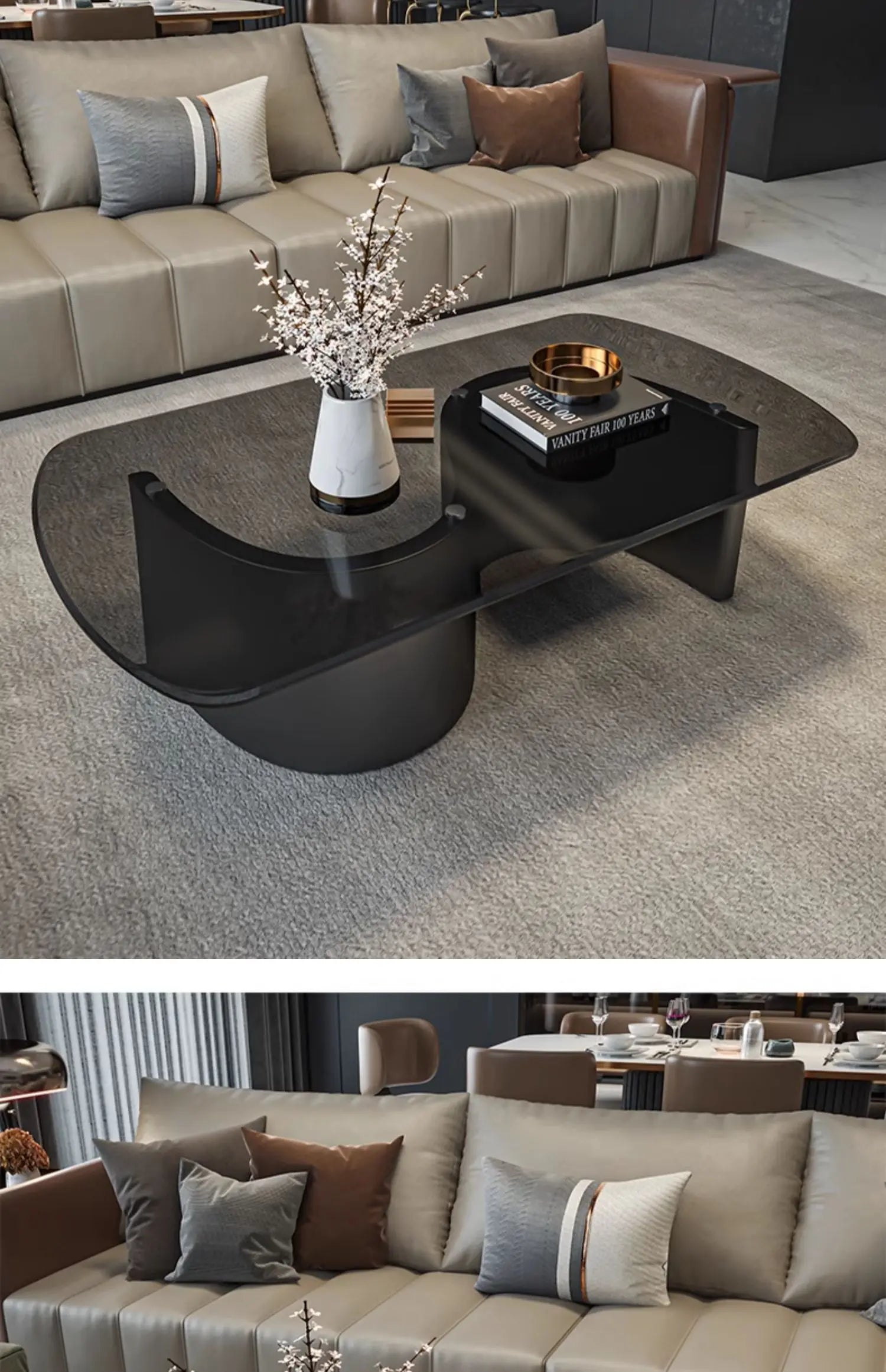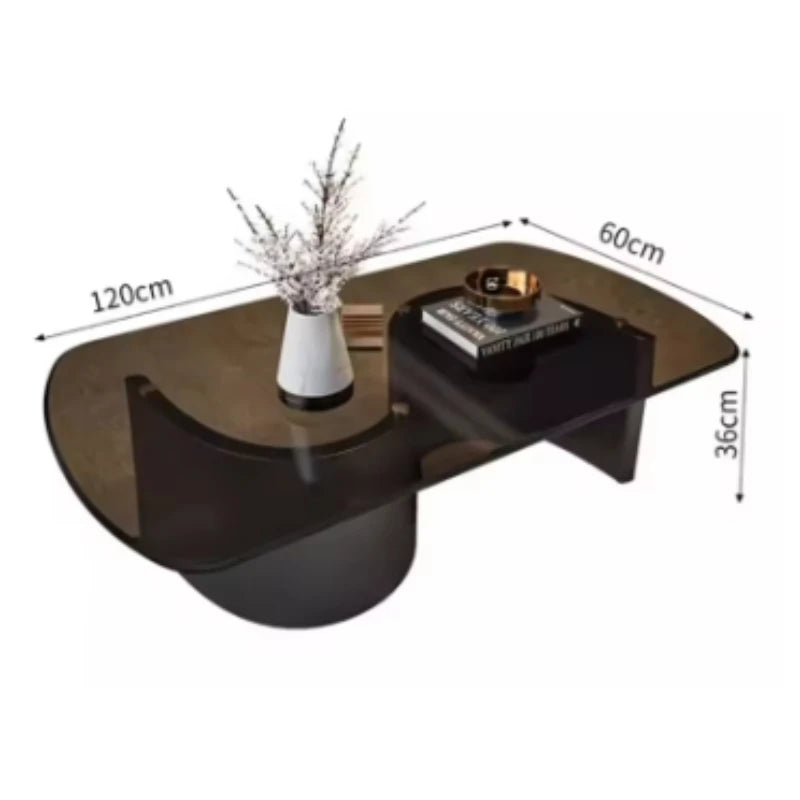 Ett elegant soffbord som kombinerar minimalistisk stil med praktisk funktion. Den rektangulära formen och det härdade glaset ger en sofistikerad känsla till vardagsrummet, loungen eller kontoret.