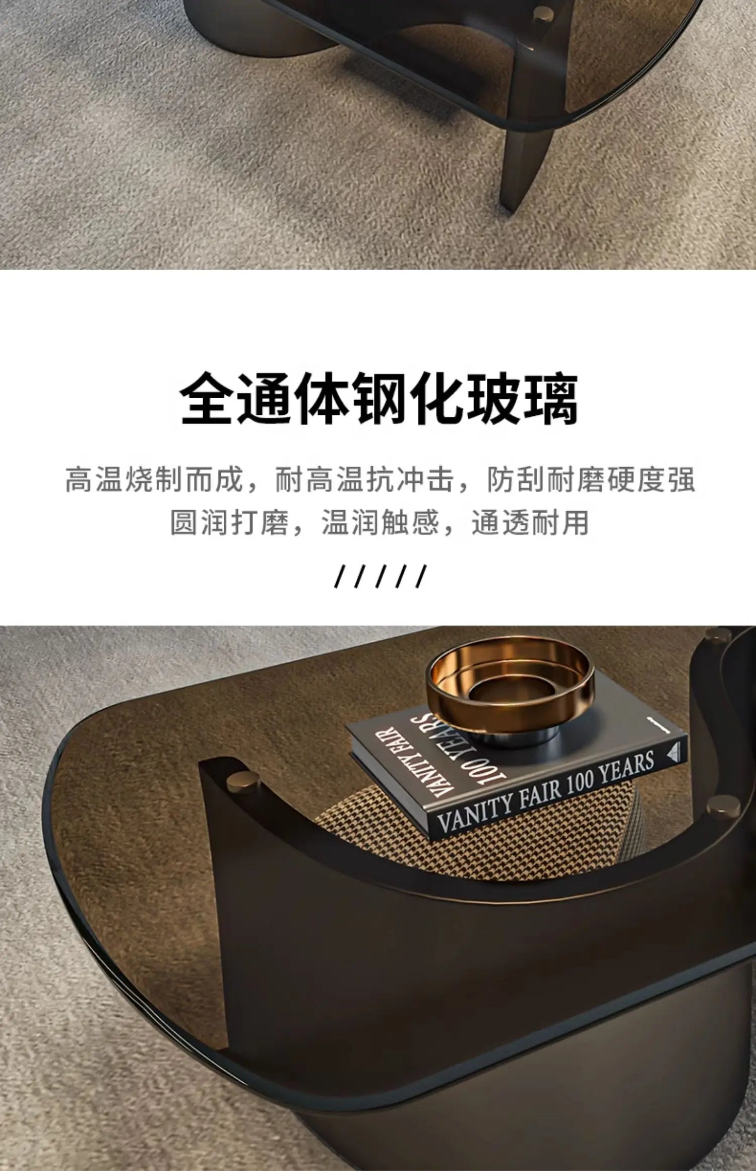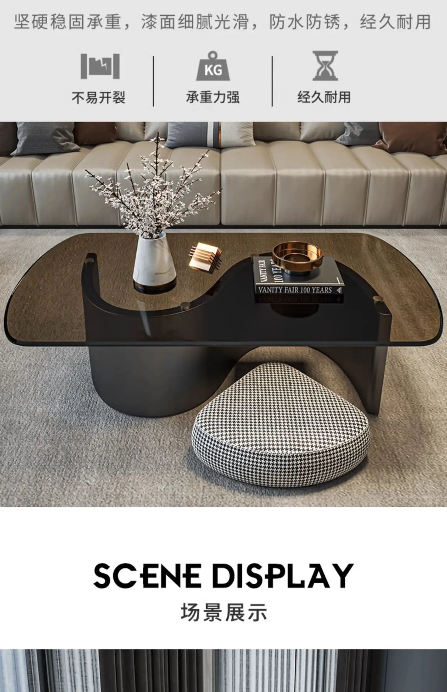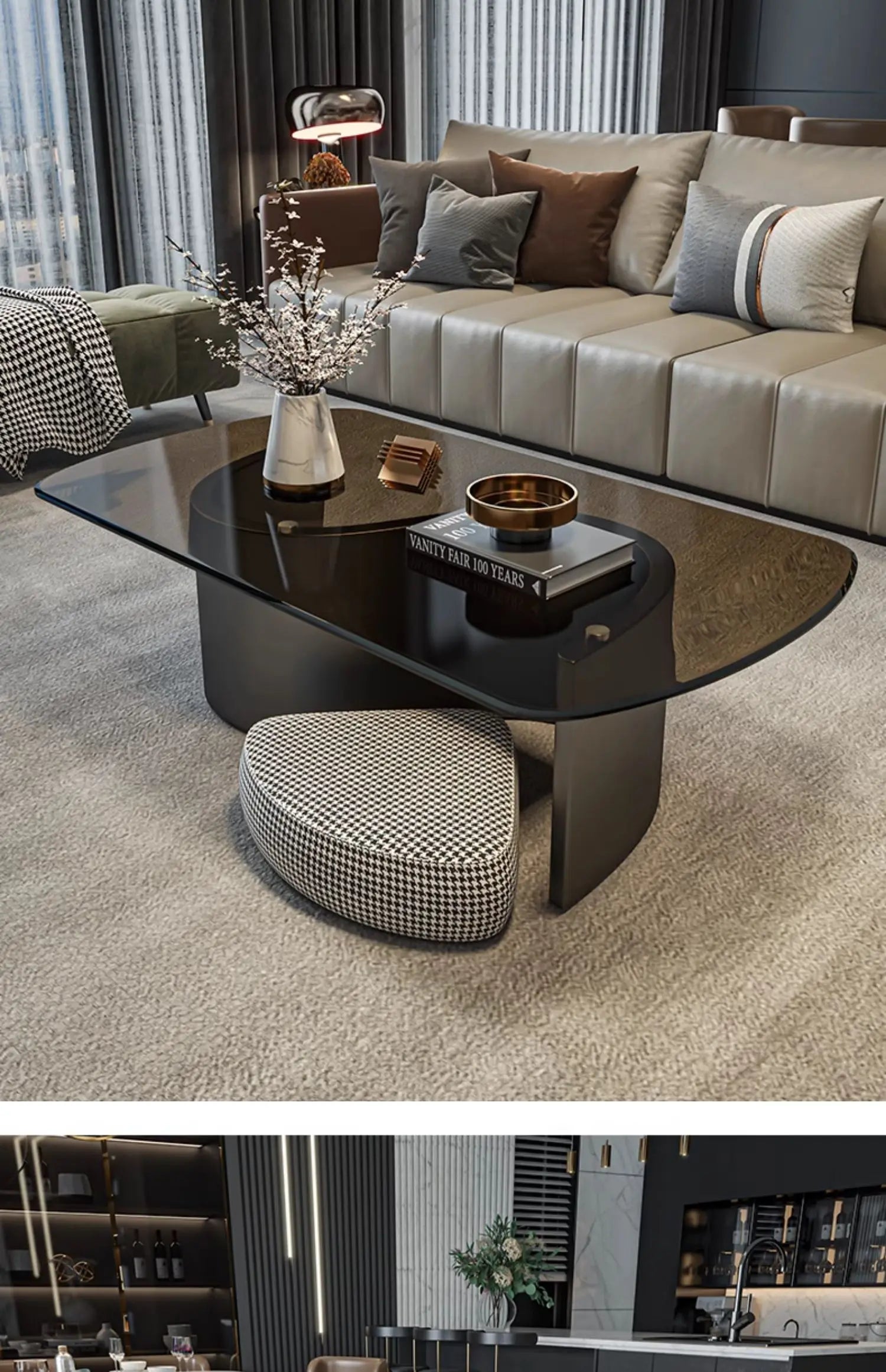 Ett elegant soffbord som kombinerar minimalistisk stil med praktisk funktion. Den rektangulära formen och det härdade glaset ger en sofistikerad känsla till vardagsrummet, loungen eller kontoret.