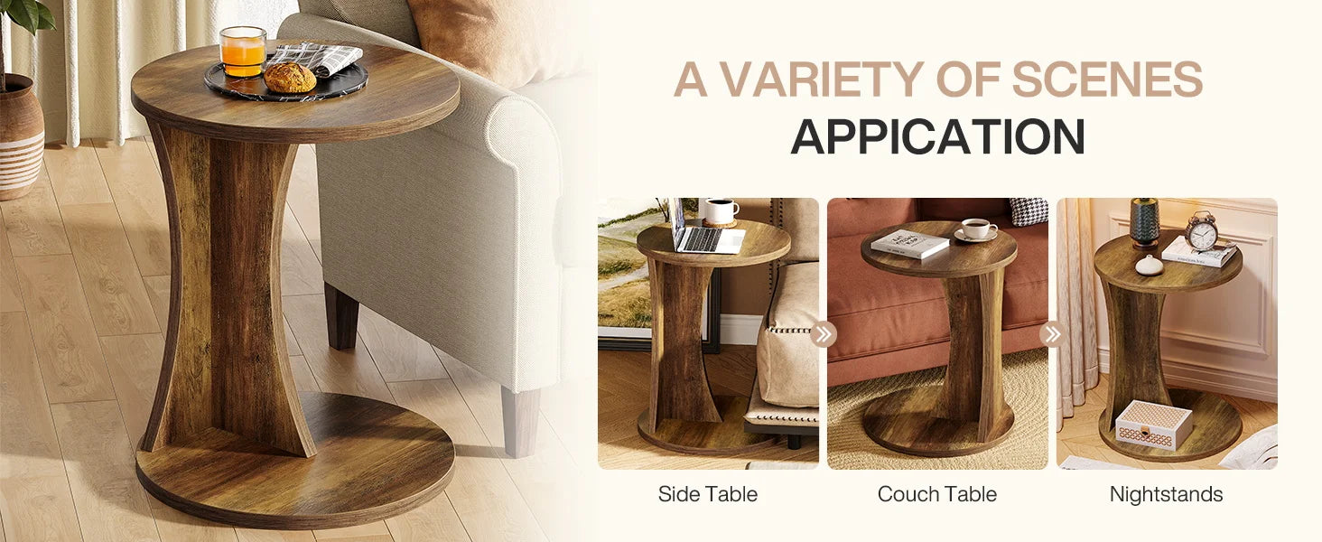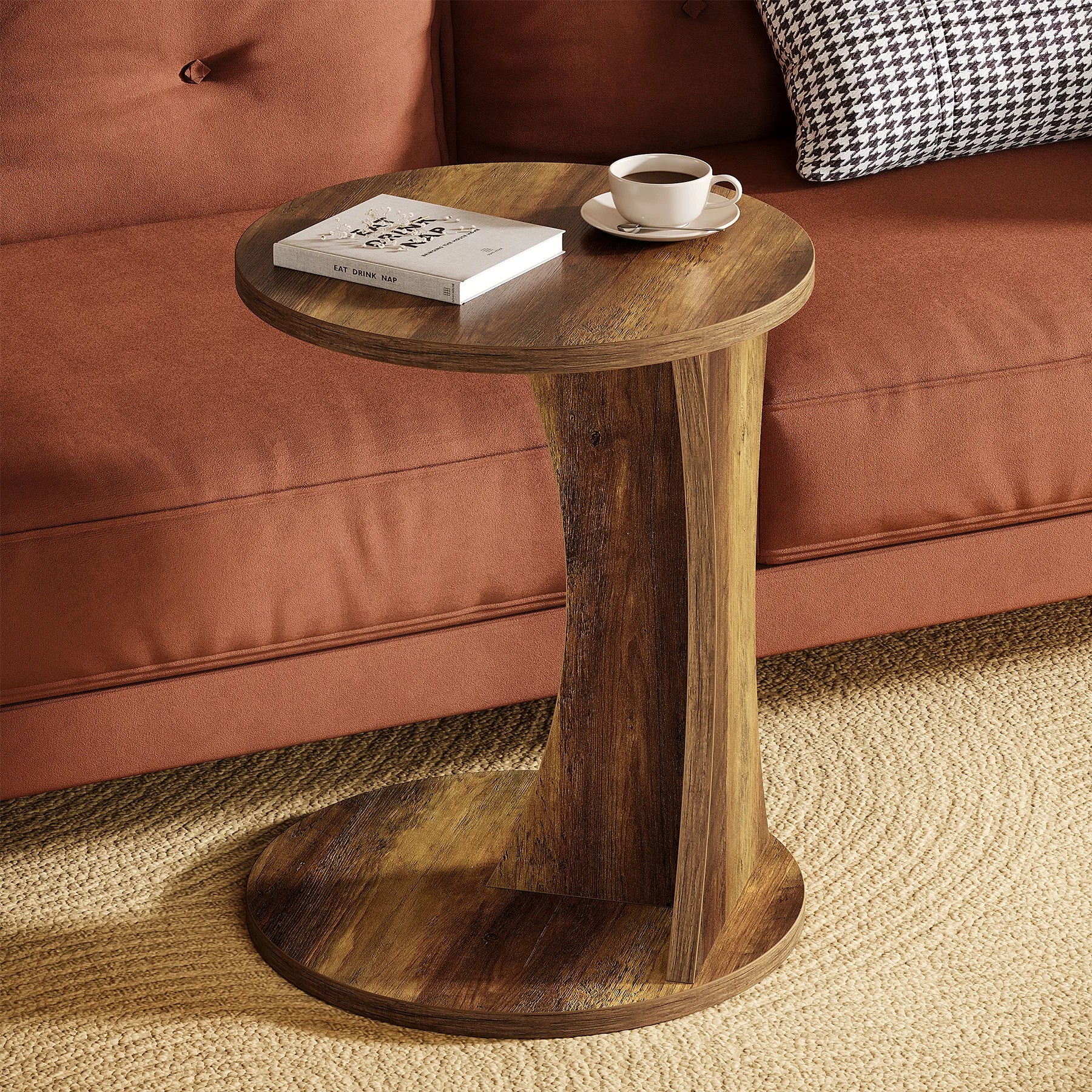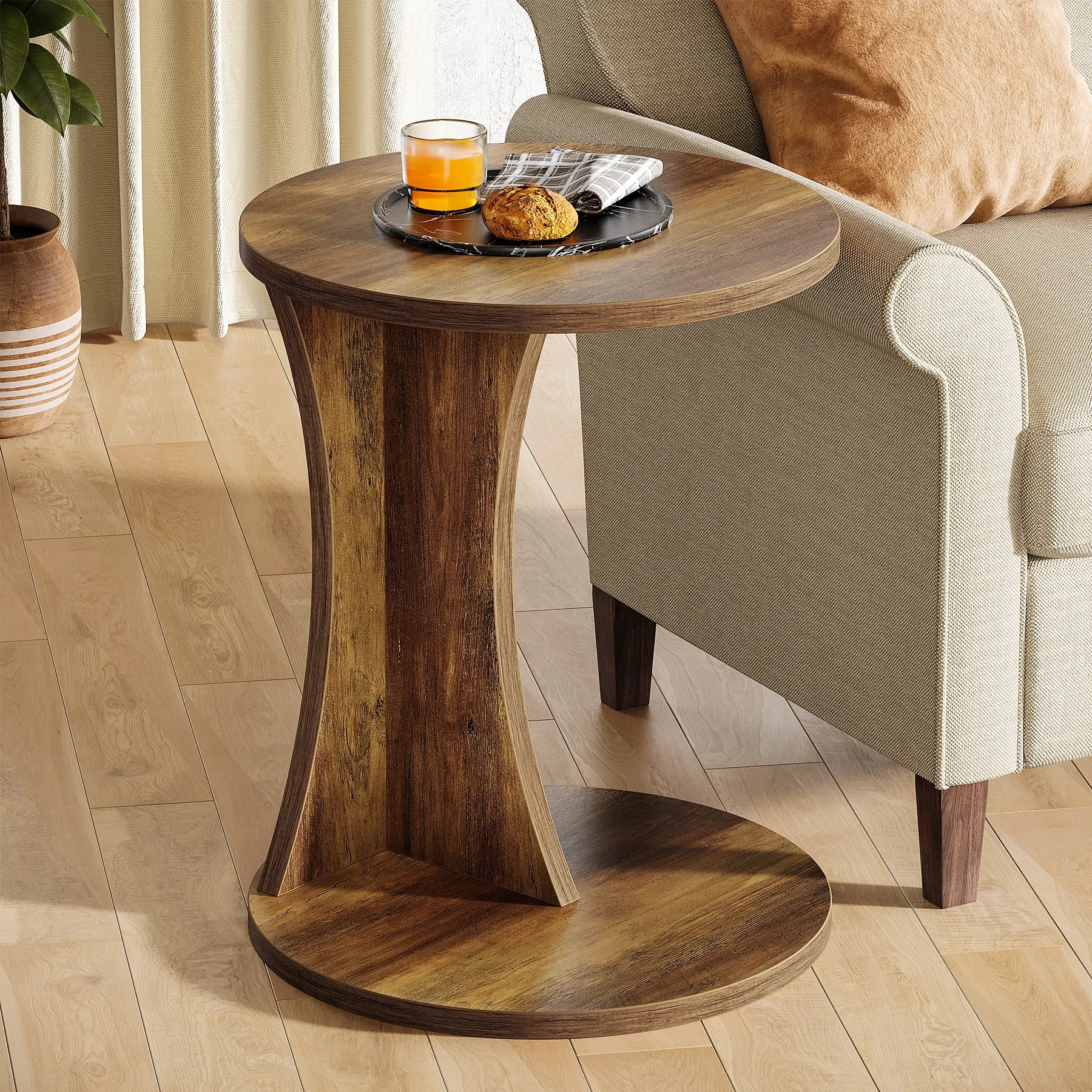 Tribesigns C-formad rund sidobord – 2-nivå rustikt soffbord, 19" med stabil bas