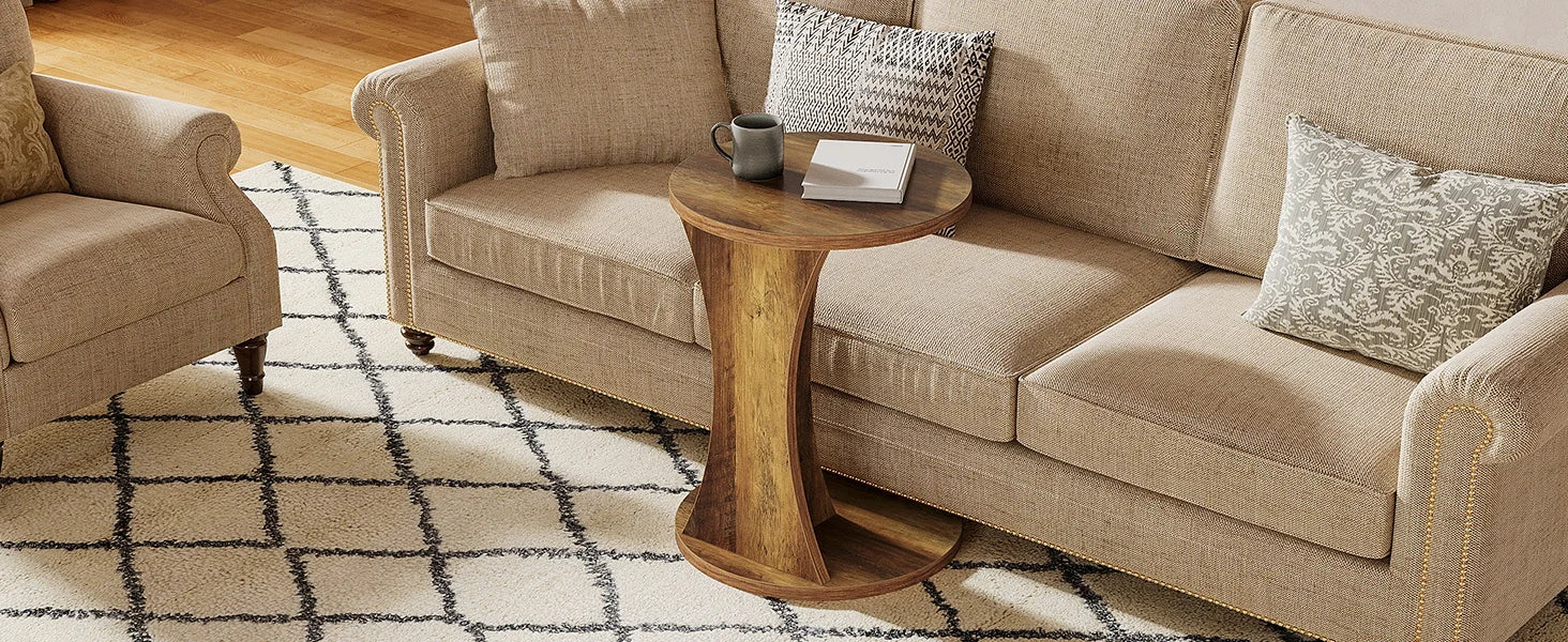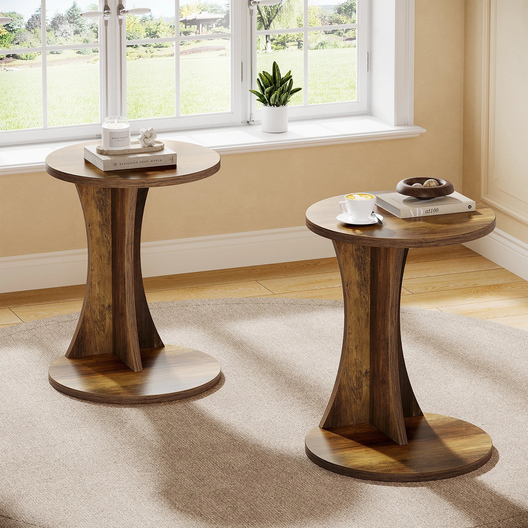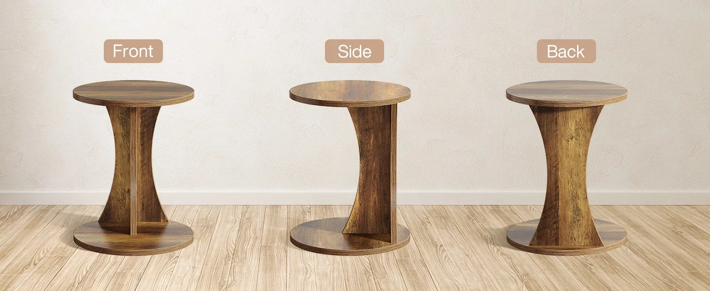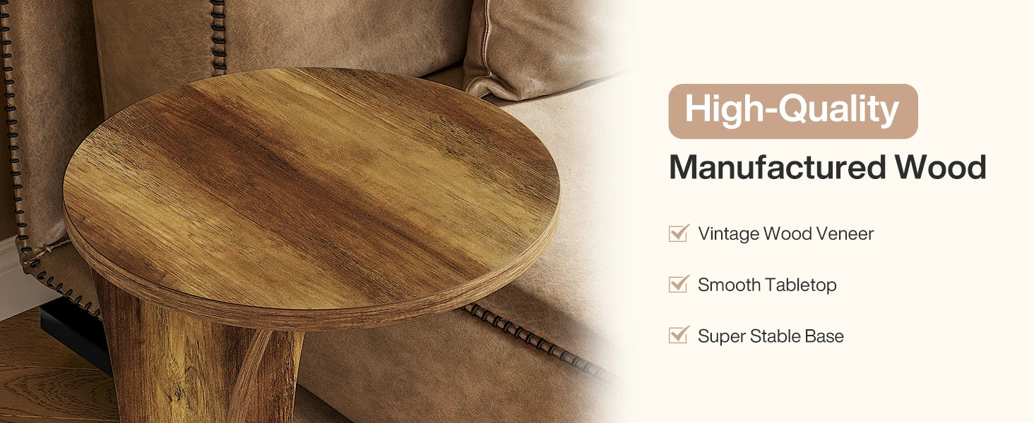 Tribesigns C-formad rund sidobord – 2-nivå rustikt soffbord, 19" med stabil bas