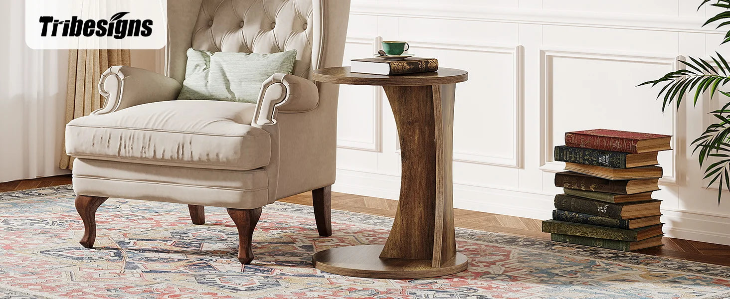 Detta eleganta sidobord från Tribesigns kombinerar konstnärlig design med praktisk funktionalitet. Med sin C-formade struktur och runda bordsskiva passar det perfekt bredvid soffor, fåtöljer eller sängar – både som ett stilrent soffbord och ett smidigt nattduksbord.