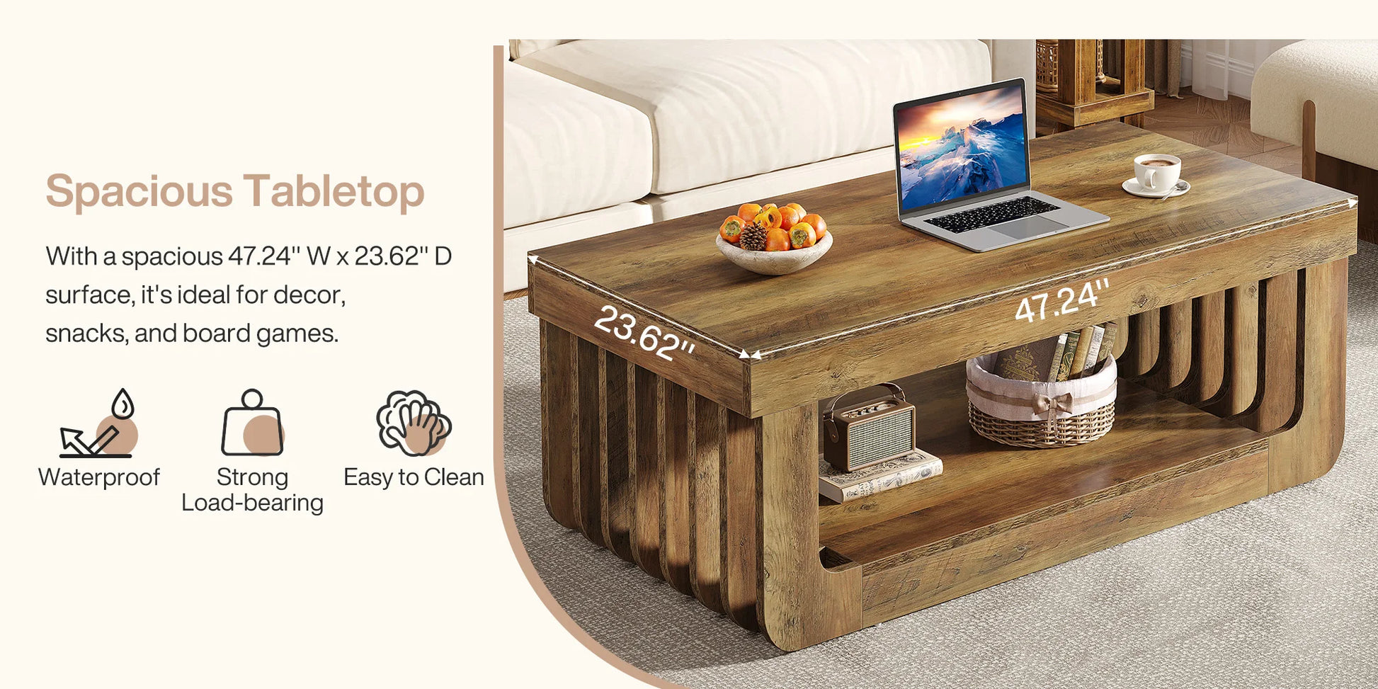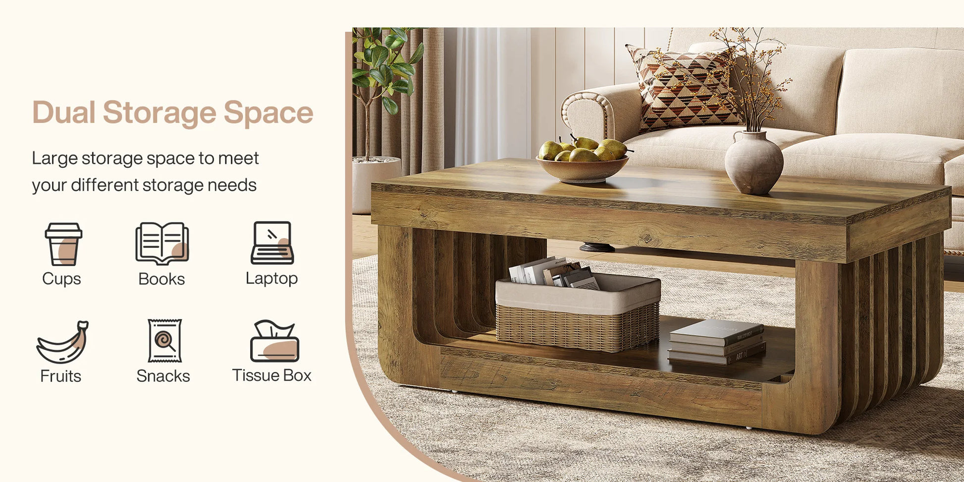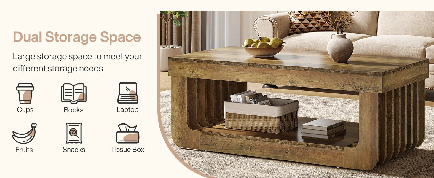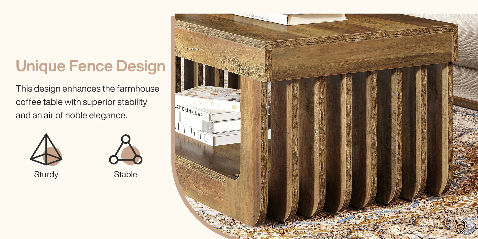 Skapa en varm och organiserad atmosfär i vardagsrummet med detta rustika soffbord från Tribesigns. Med två nivåer, generös förvaring och klassisk design är det både funktionellt och dekorativt – perfekt för moderna hem med lantlig charm.