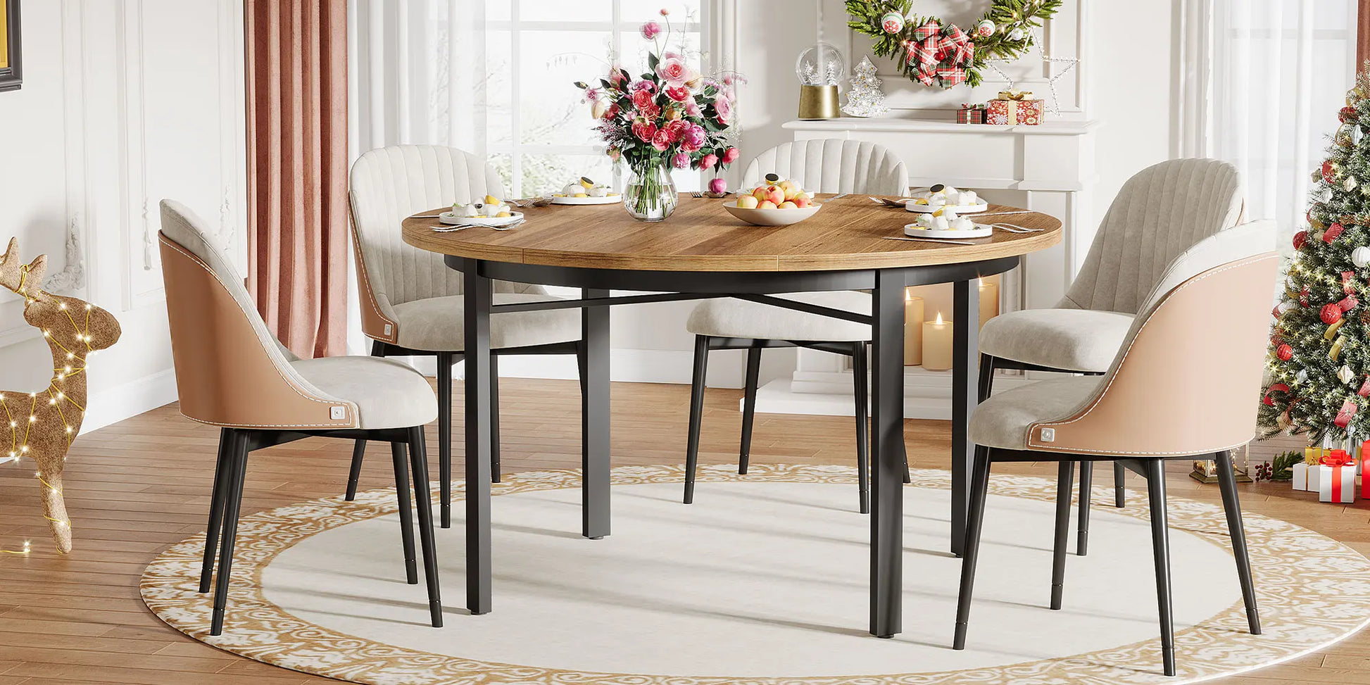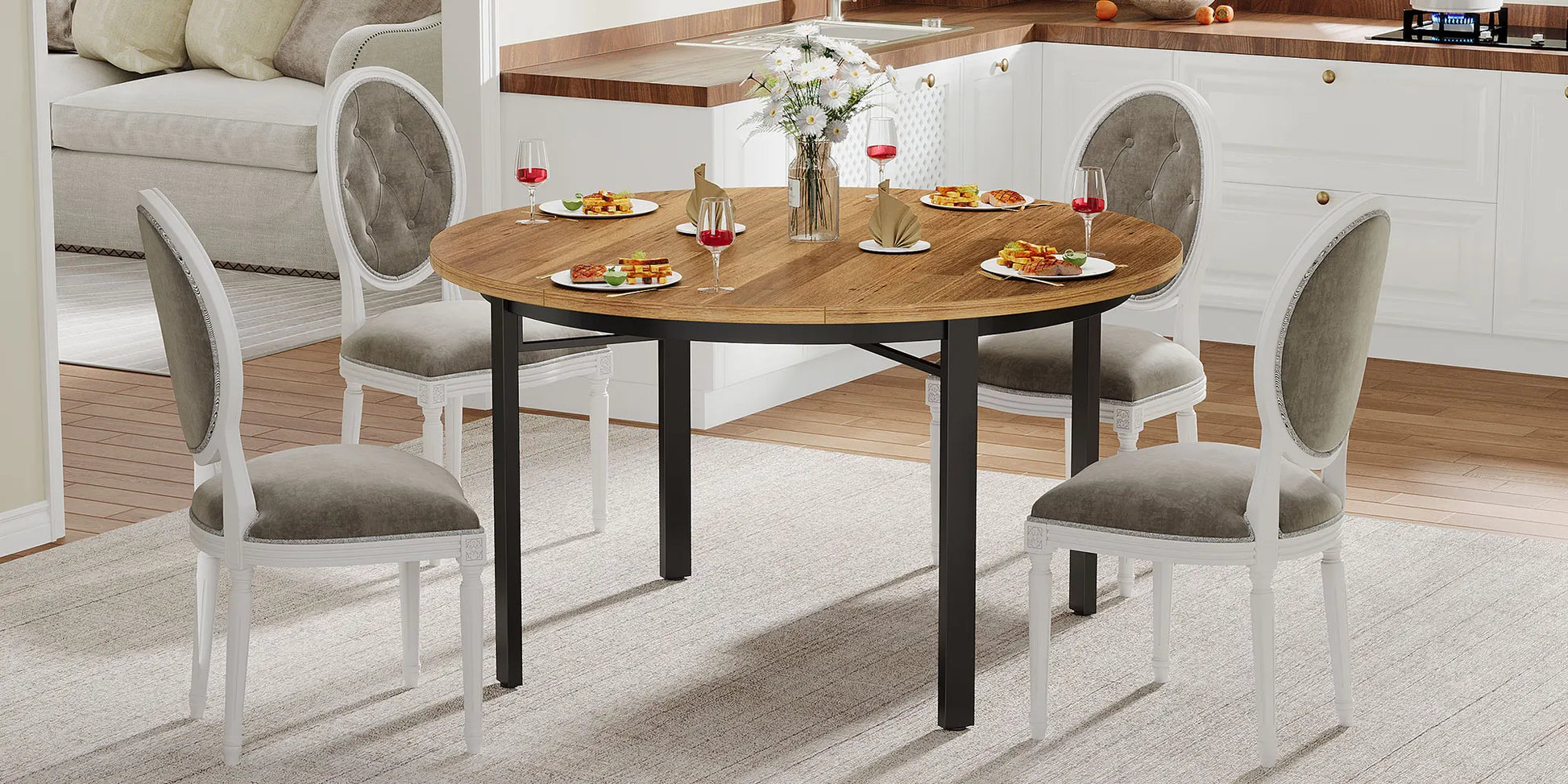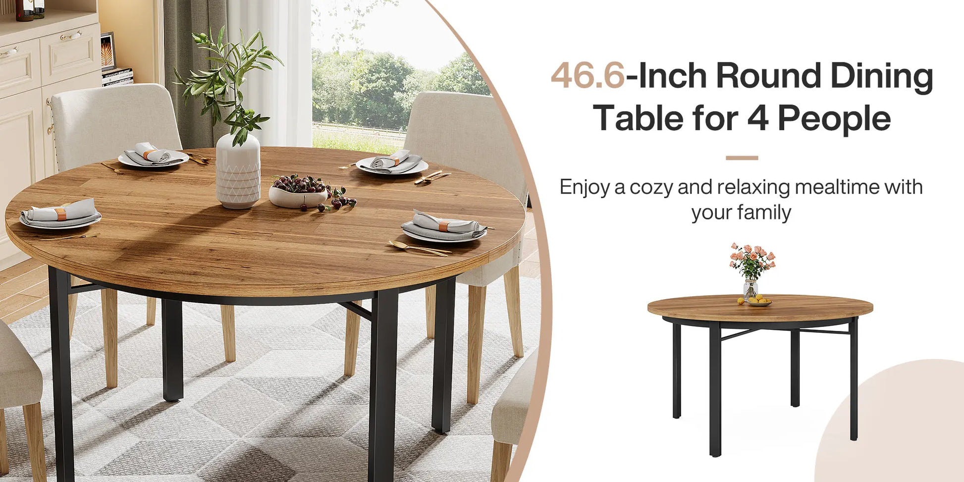 đȘ” Tribesigns Runt Matbord â Rustik Brun & Svart (118 cm)