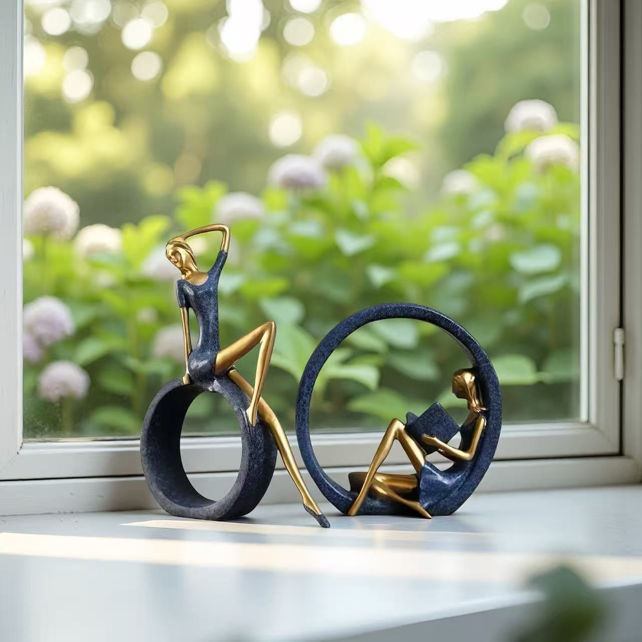 Detta set med tre eleganta resinfigurer – två yogaflickor och en läsande flicka – kombinerar nordisk kreativitet med minimalistisk lyx. Figurerna är perfekta som dekorativa detaljer i vardagsrum, sovrum, kontor eller på TV-bänken.