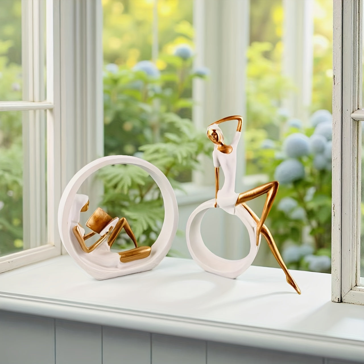 2 Yoga‑flickor + 1 Läsande Flicka – Nordiska Resinfigurer, Elegant Konst & Heminredning