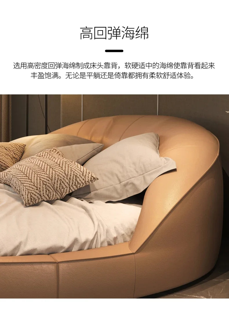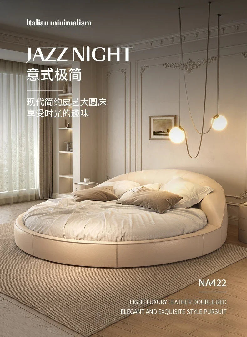 Rund Säng i Äkta Läder – Elegant Minimalistisk Design | Princess Cream Wind | 180/200 cm | Lyxig Bröllopssäng