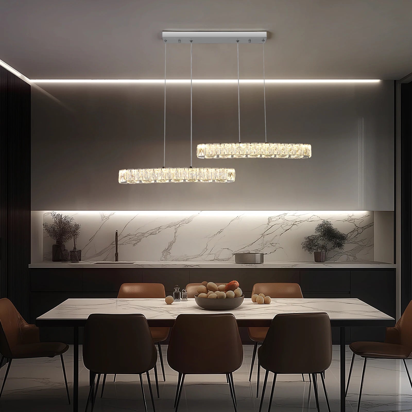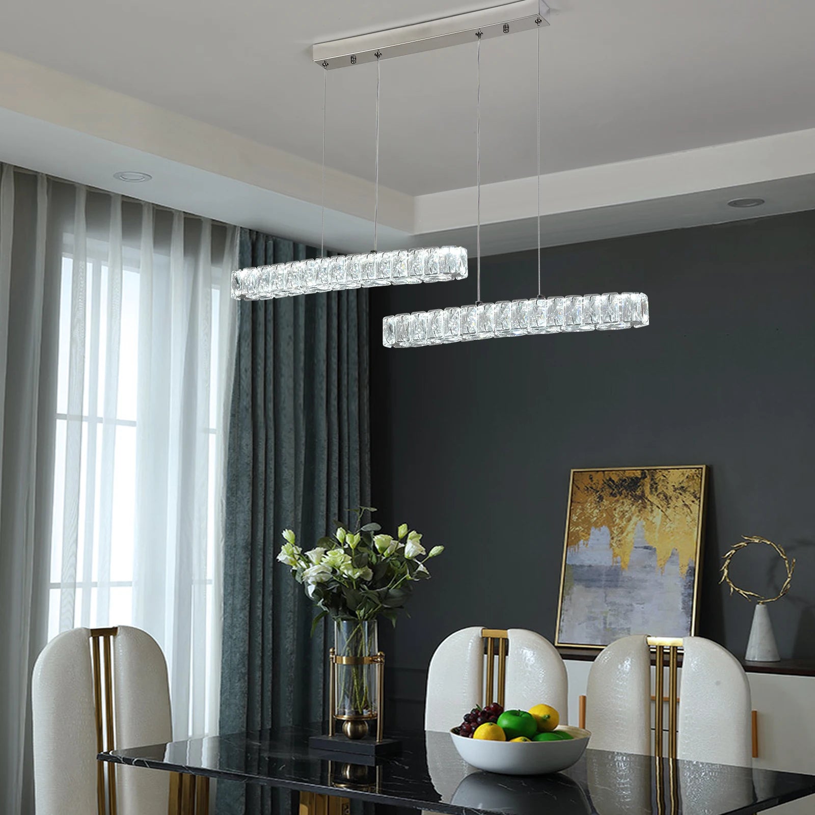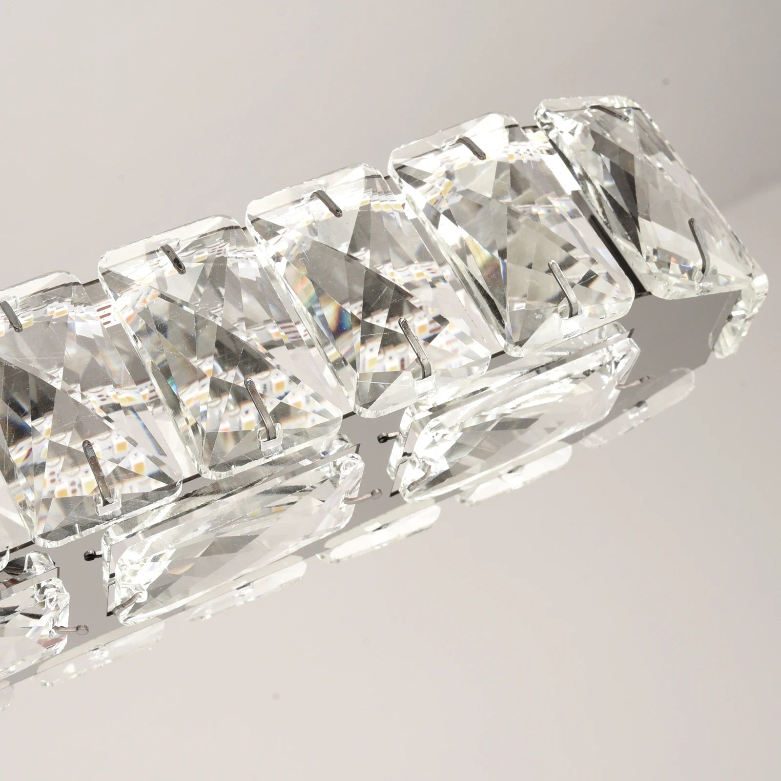 Förvandla ditt hem till en elegant oas med denna moderna kristallkrona från Vetrulus. Med sin glänsande kromfinish, skimrande kristaller och justerbar LED-belysning skapar den en sofistikerad atmosfär i vardagsrum, matsal, sovrum eller hotellmiljöer.