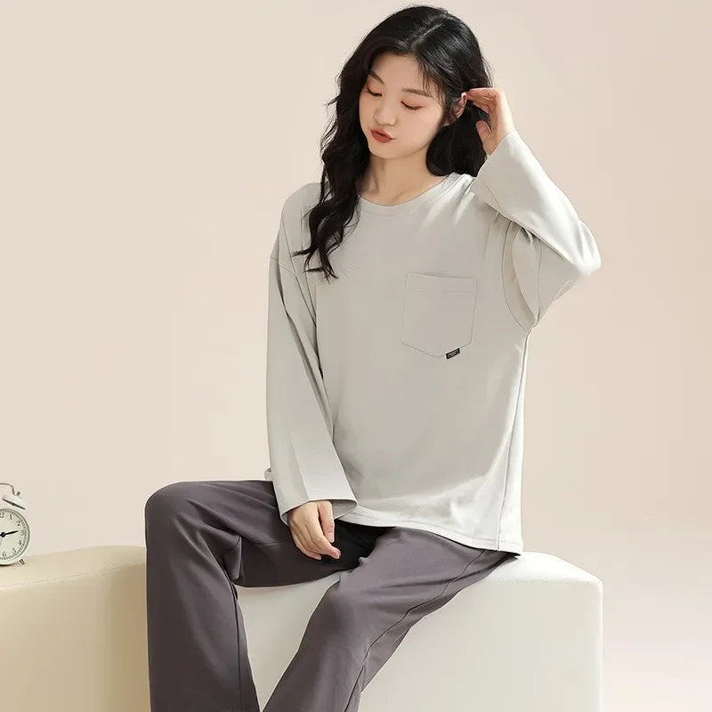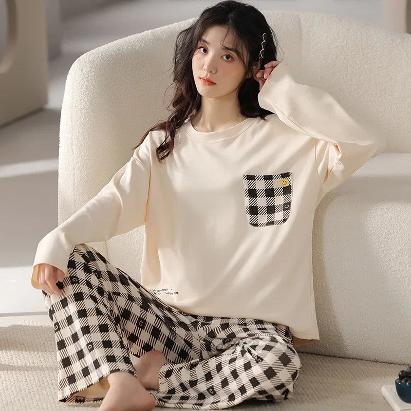 Mjuk och mysig pyjamas i ren kammad bomull – perfekt för unga kvinnor som vill ha komfort och stil hemma.