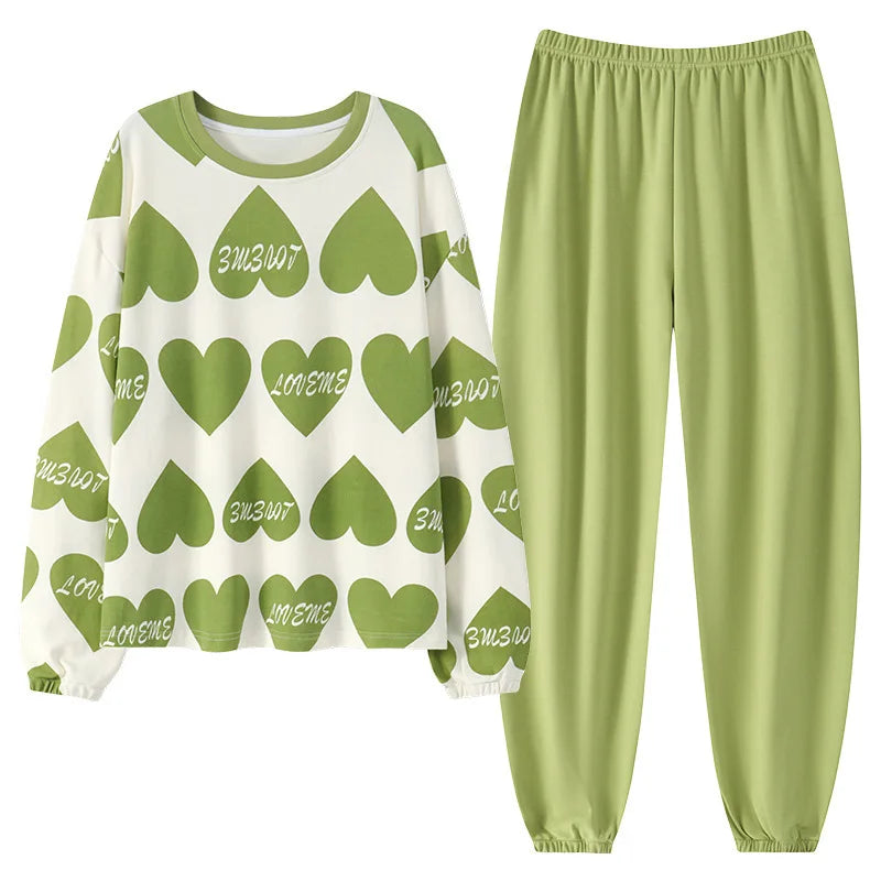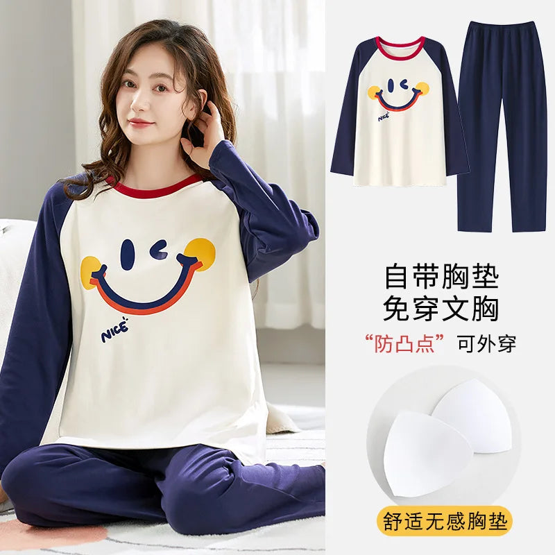 🌸 Koreansk Pyjamas för Kvinnor – Blommigt Tryck – Bomullsblandning med Korsett – Långärmad & Långbyxor