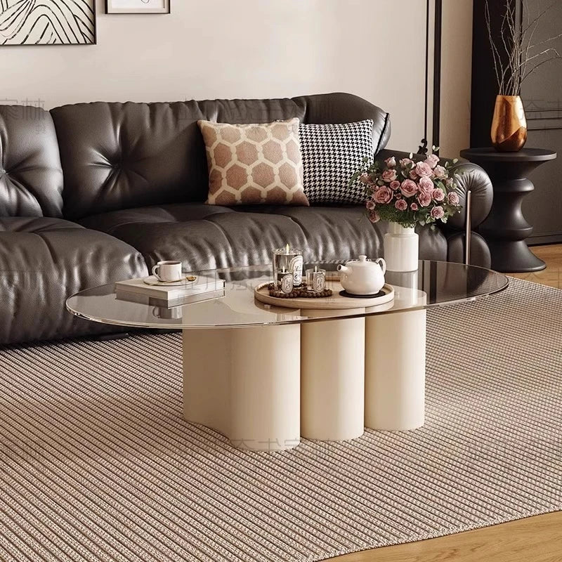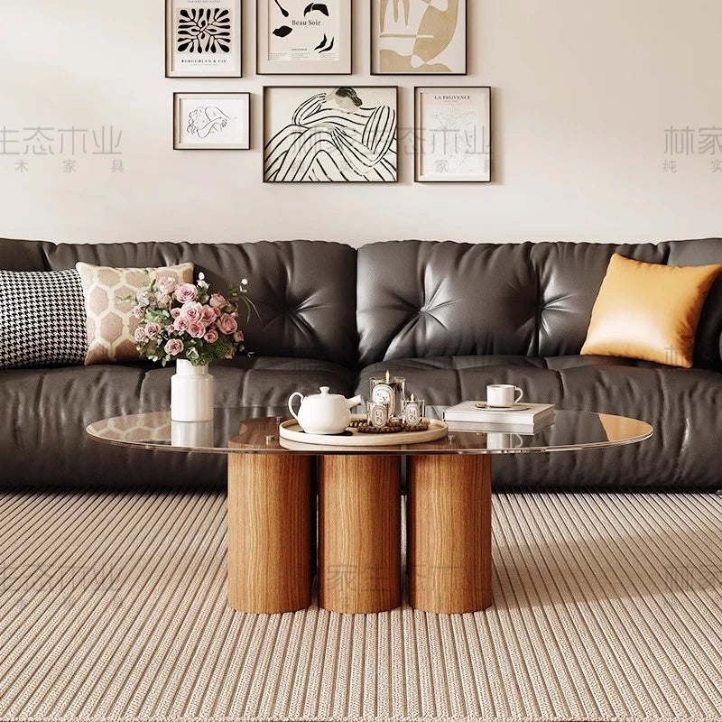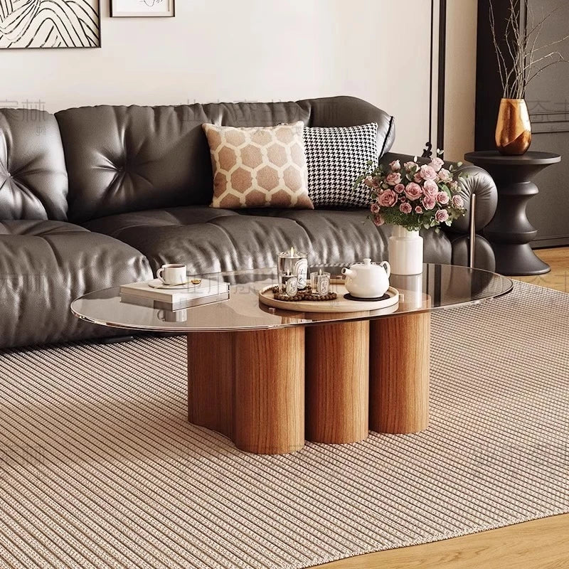 Transparent Träsoffbord – Oval Glasdesign – Minimalistisk & Nordisk Stil – 135×75×37 cm